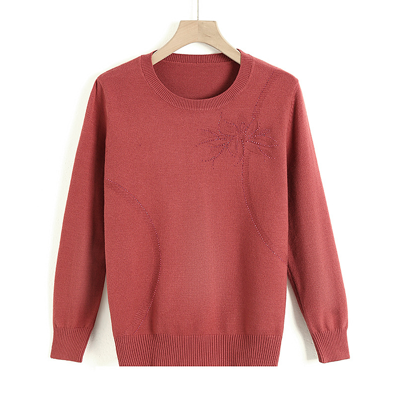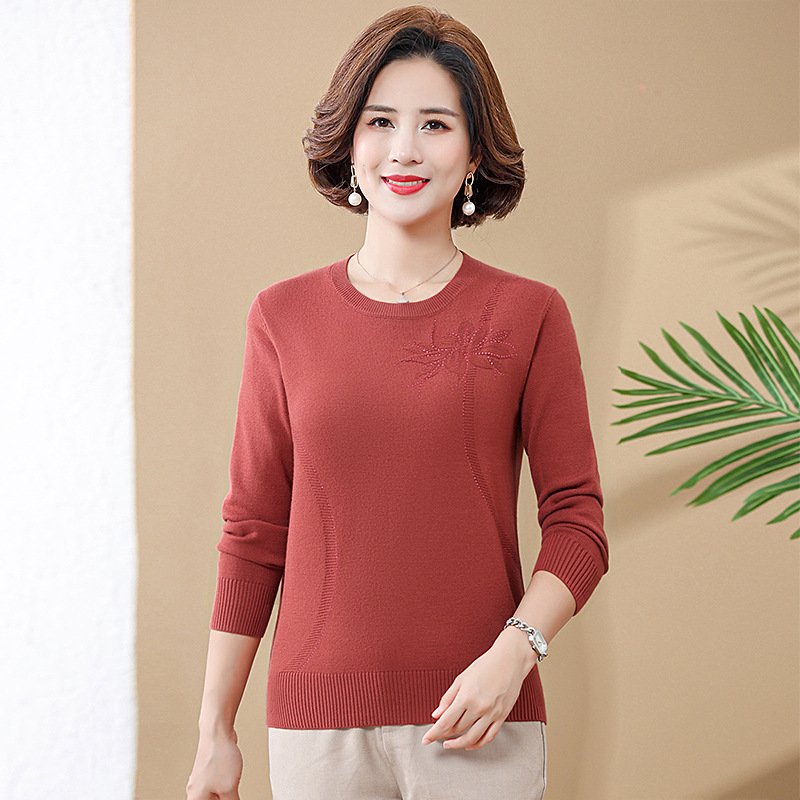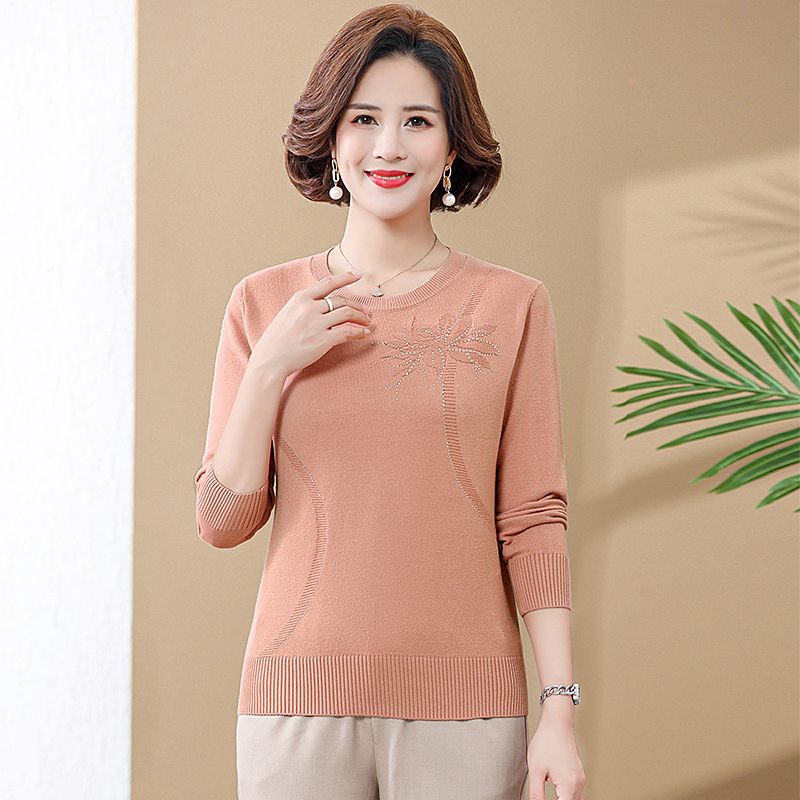 中老年女装纯色打底衫春秋新款圆领时尚气质内搭妈妈装薄款针织衫