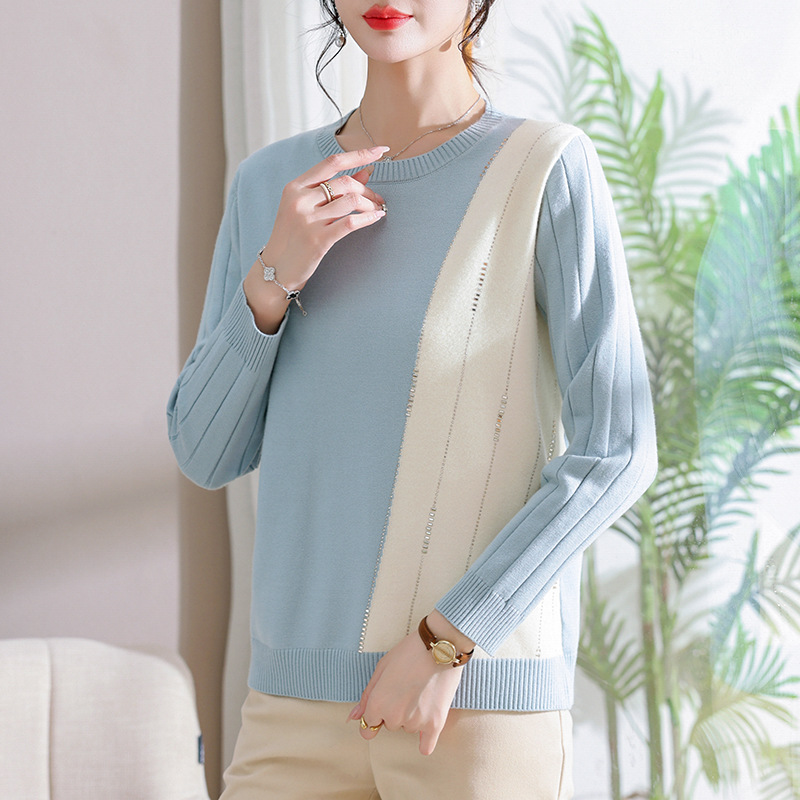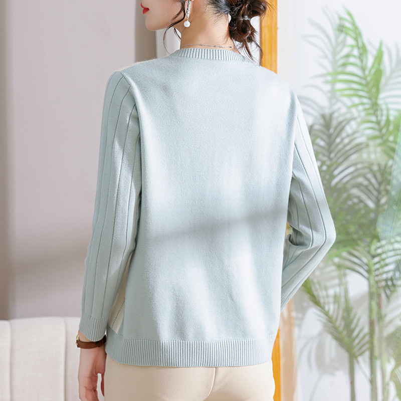 中年妈妈早秋长袖针织小衫洋气质中老年打底衫女士春秋薄款毛衣女