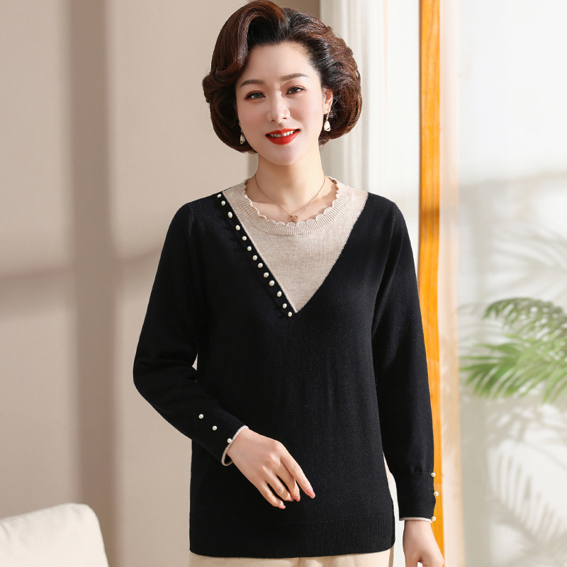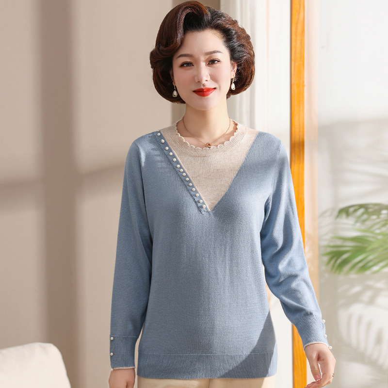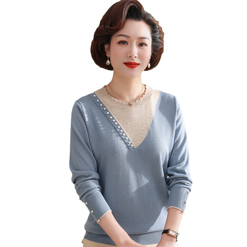 妈妈毛衣早秋装洋气针织衫2023年新款中老年女装秋冬季内搭打底衫