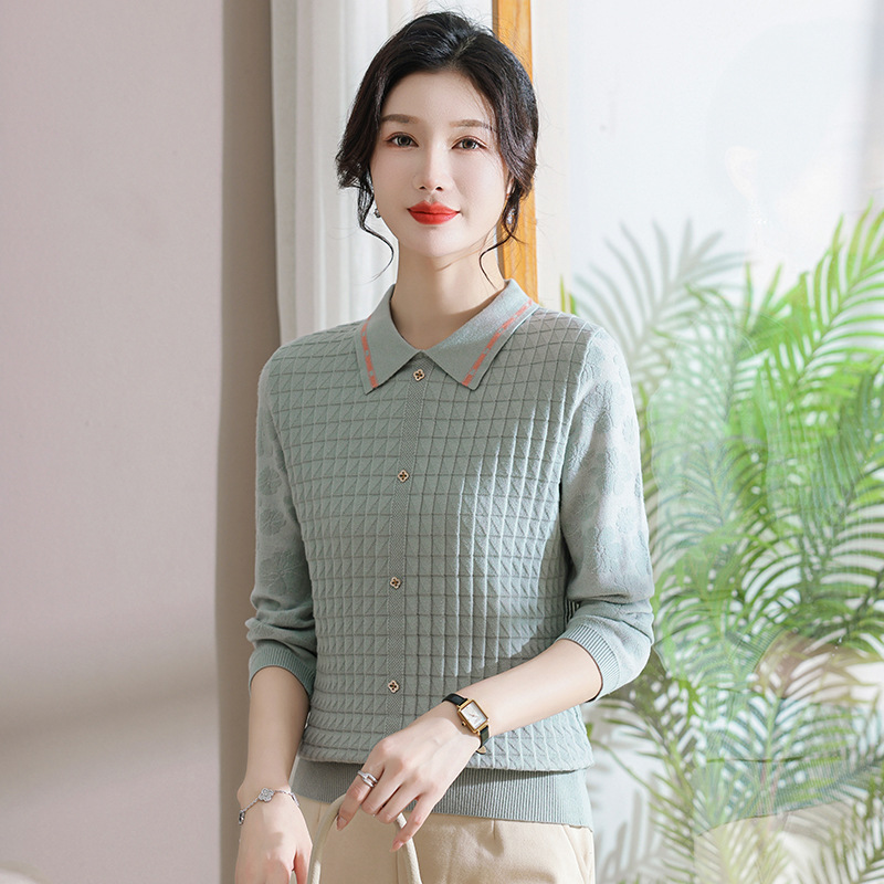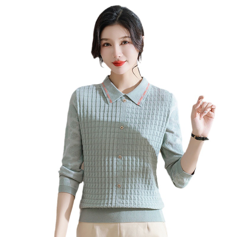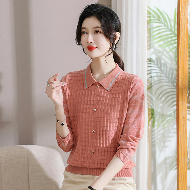 妈妈秋装翻领毛衣中年40到50岁打底衫中老年女装新款休闲长袖上衣