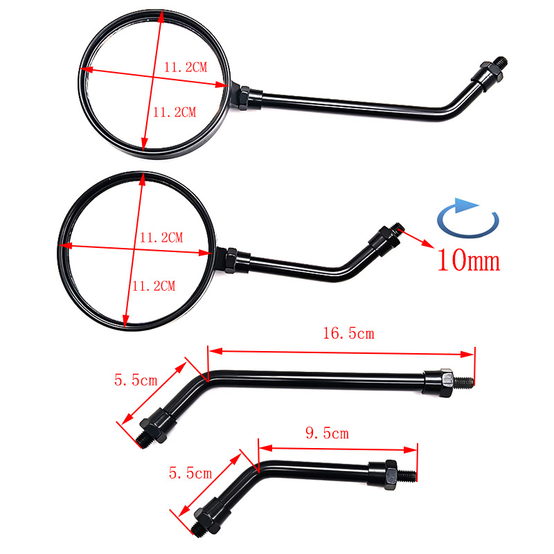 10MM 改装摩托车后视镜越野车反光镜 电动车倒后镜复古车镜 配件