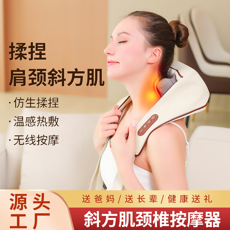 颈椎按摩器背部腰部疏通神器斜方肌脖子揉捏按摩仪肩颈热敷颈部