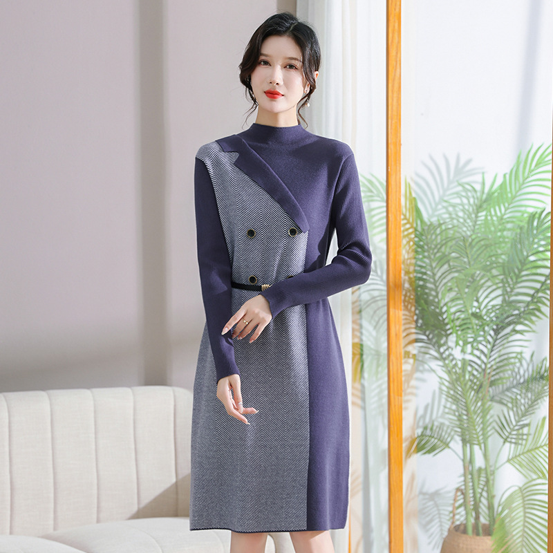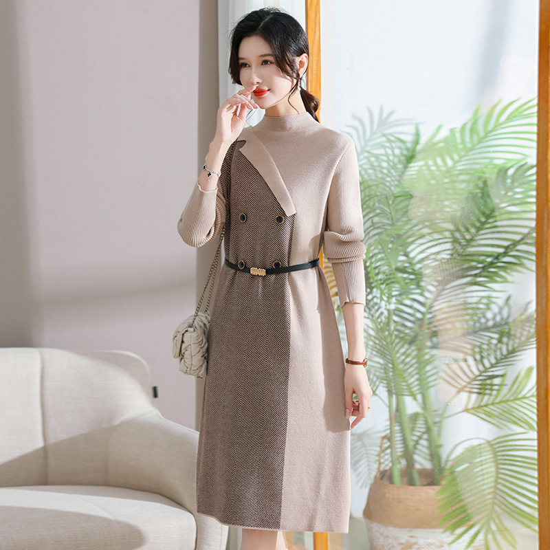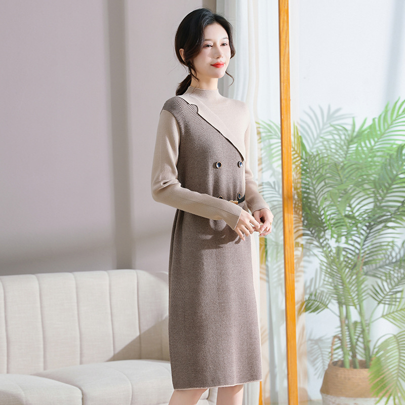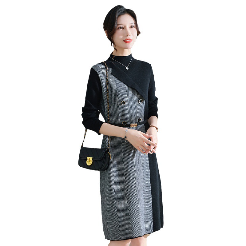 秋冬季长袖连衣裙子女装长袖针织连衣裙内搭打底毛衣宽松妈妈秋装