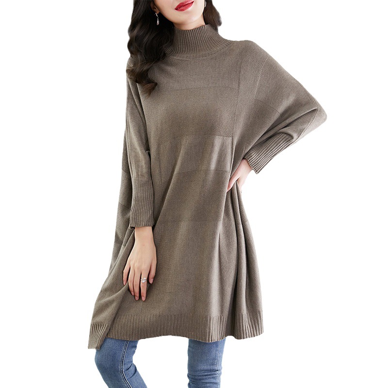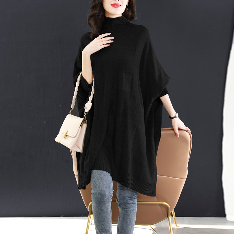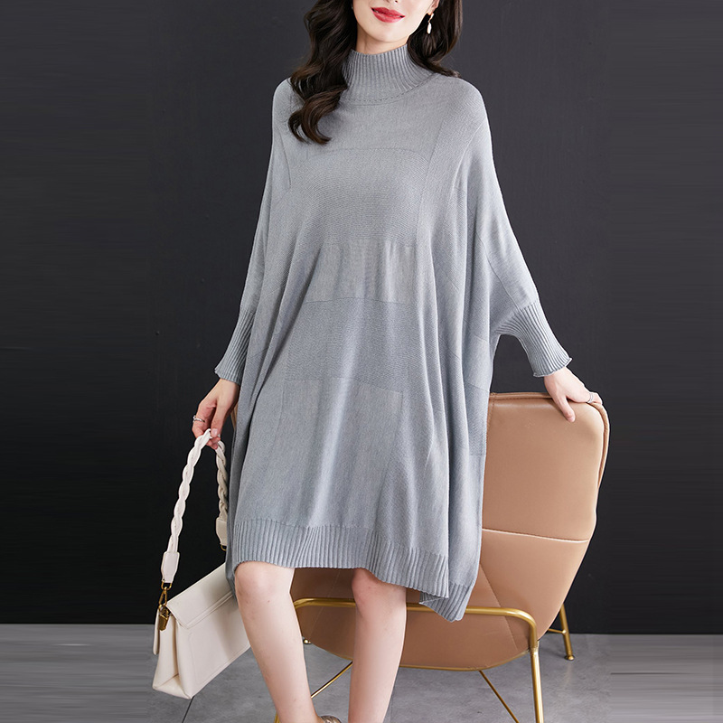 慵懒风高领时尚大款不规则宽松针织毛衣女早秋中长款大码女装毛衣