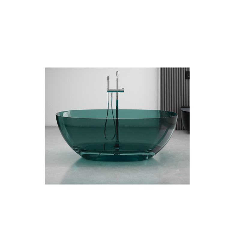 佛山厂家独立式透明水晶浴缸家用彩色树脂椭圆形浴盆网红酒店浴缸