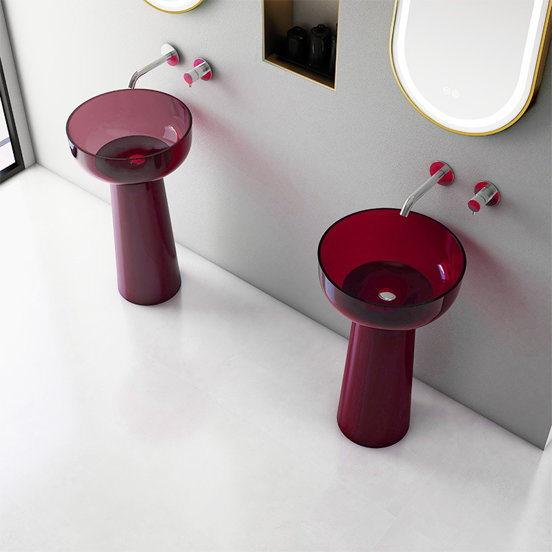 透明洗脸盆落地式洗漱台面树脂立柱盆氛围灯洗脸盆个性洗手盆批发