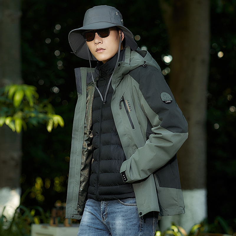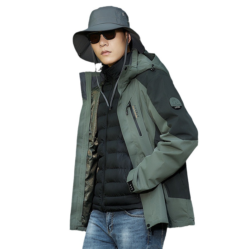 冲锋衣男三合一可拆卸鹅绒黑金石墨烯内胆情侣新款外套冬季滑雪服