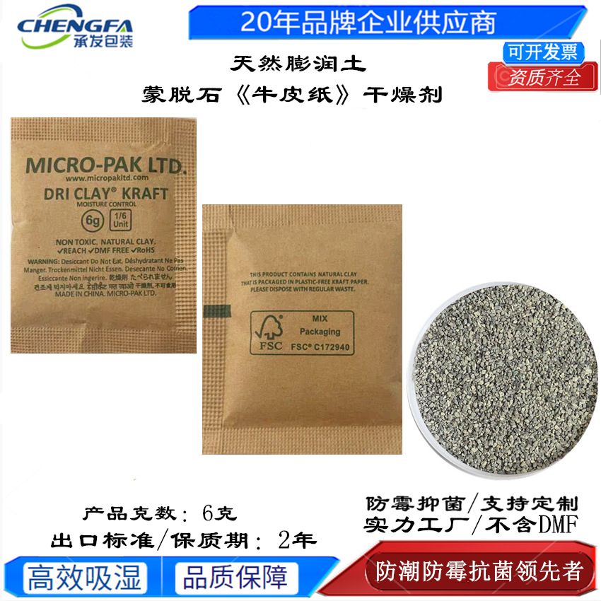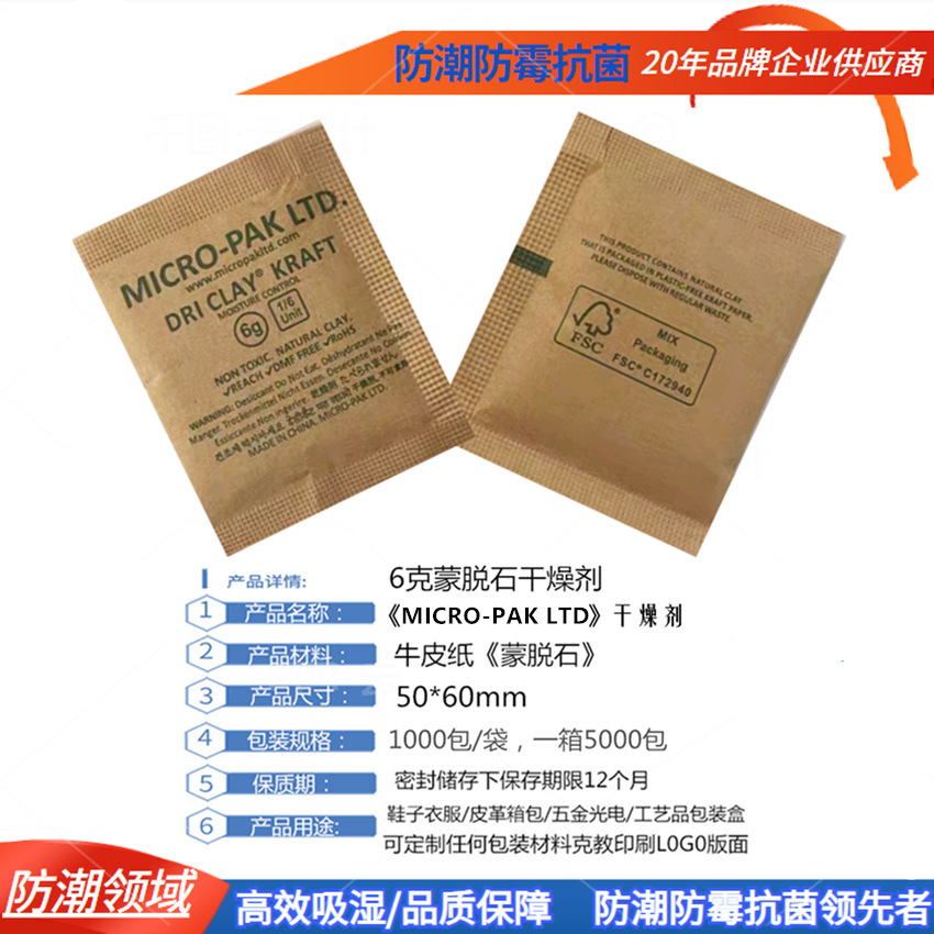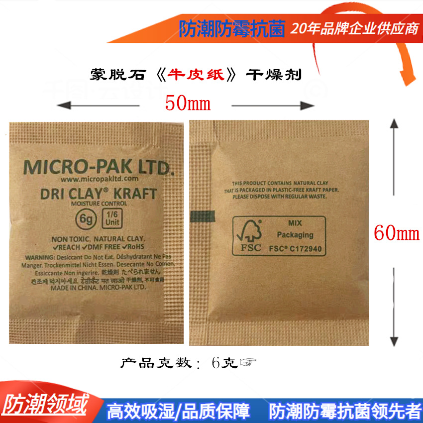 6克蒙脱石牛皮纸干燥剂纺织衣服装服饰箱包鞋子工艺防潮防霉干燥