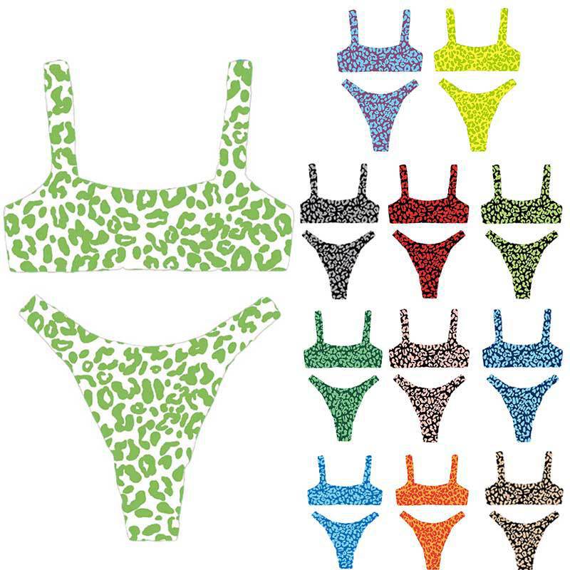 新款欧美风性感时尚多色高腰印花分体比基尼泳衣 女士泳衣bikini