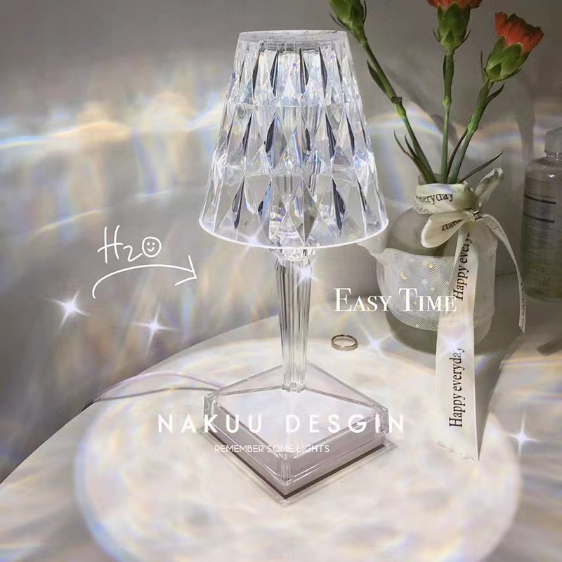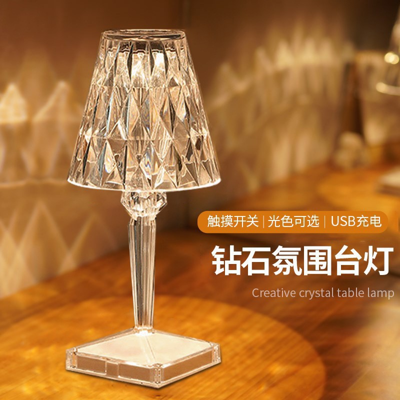 跨境创意led水晶钻石台灯卧室床头氛围灯客厅usb充电触摸小夜灯