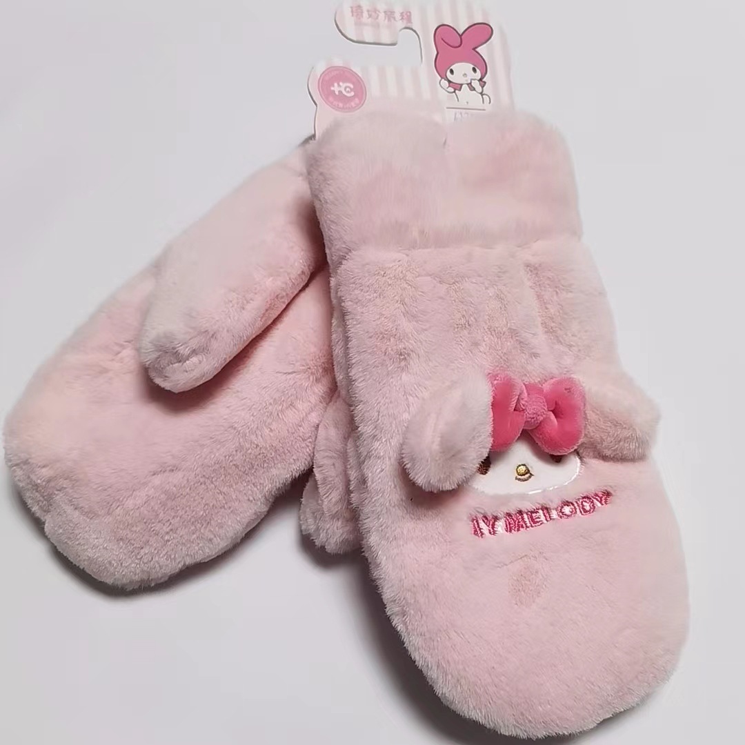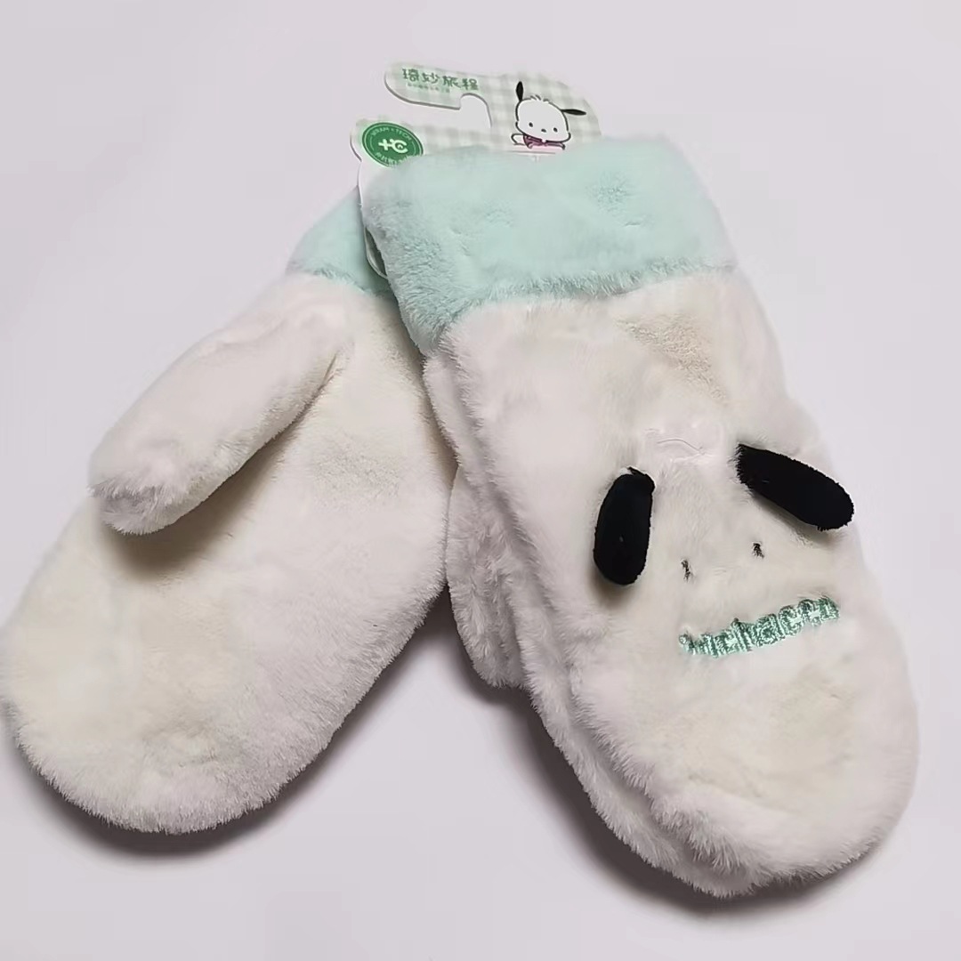 盛琦酷米狗中童布艺包仔手套冬季学生骑行防寒保暖加绒加厚挂脖