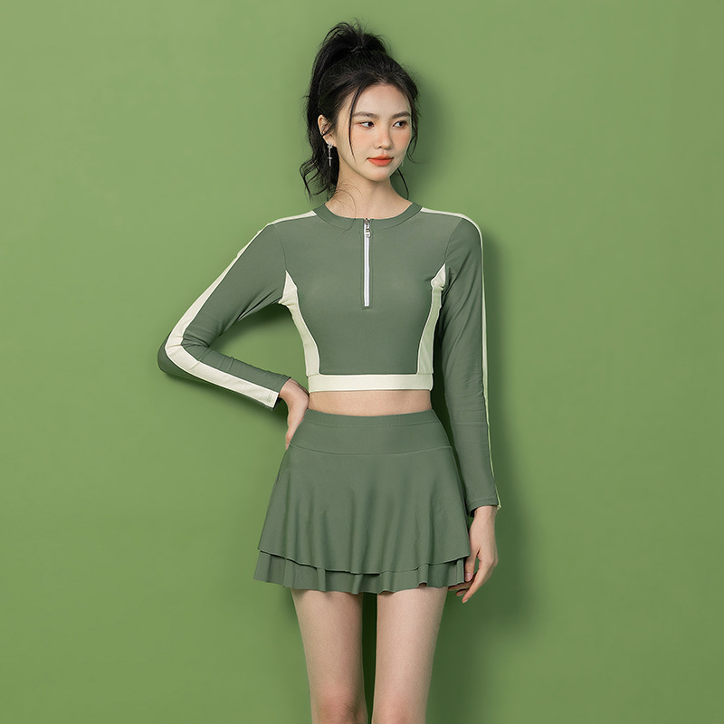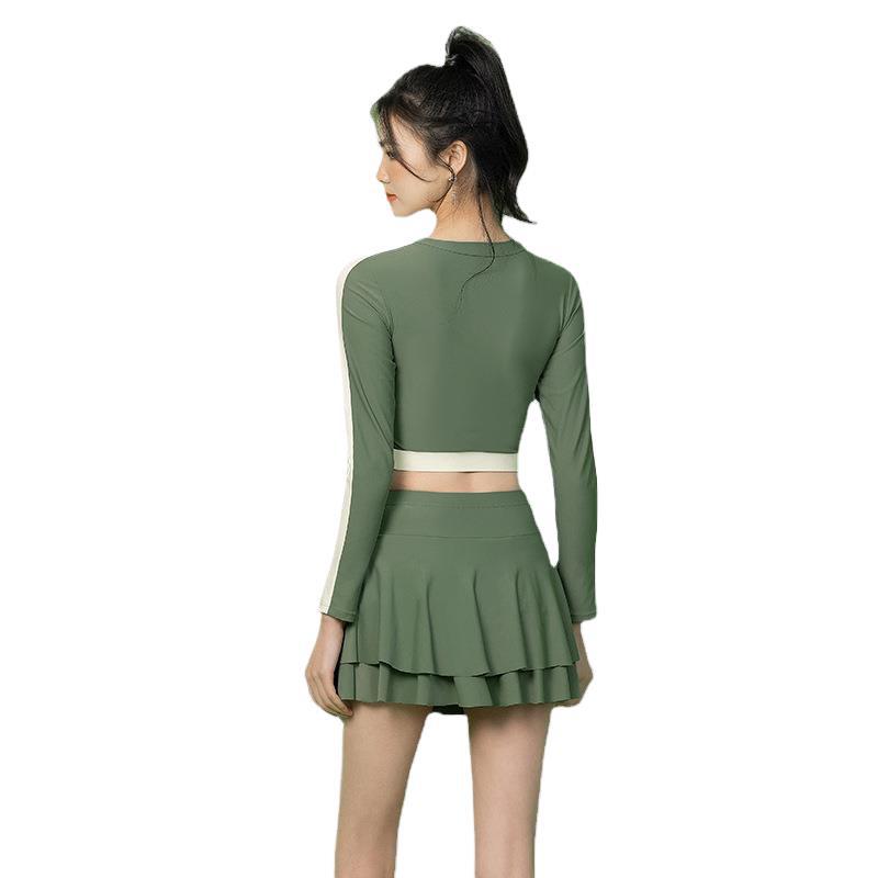 分体泳衣女夏2025新款长袖保守显瘦遮肚游泳馆专用运动平角游泳装