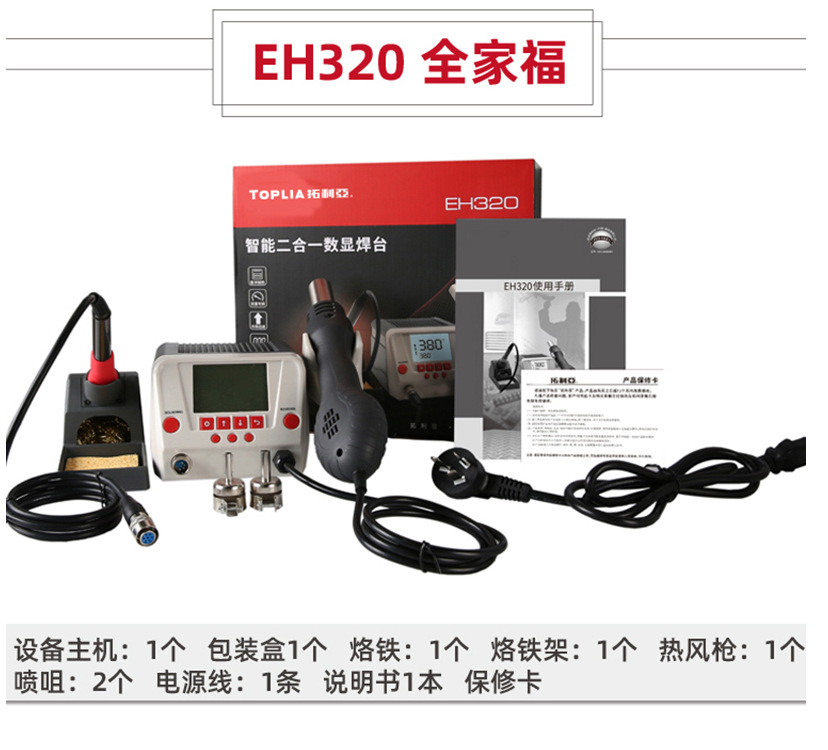 优利德 拓利亚EH320智能二合一数显焊台兼具热风枪与烙铁的优势