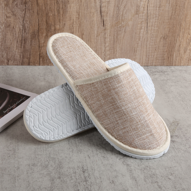 宾馆民宿美容院棉麻一次性拖鞋星级酒店居家待客厚底亚麻拖鞋批发