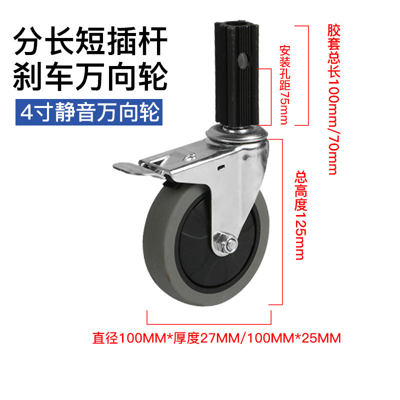 橡胶轮餐车轮万向轮定 做静音优质4寸TPR餐车推车刹车脚轮加工