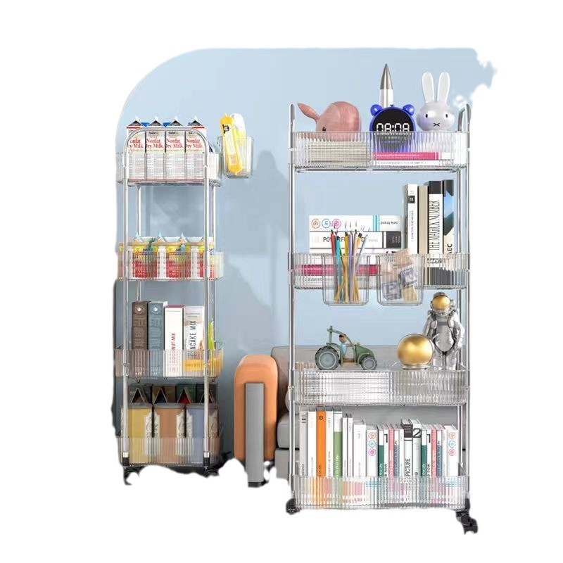 定制透明亚克力化妆品浴室移动置物架零食收纳架小推车置物架书架