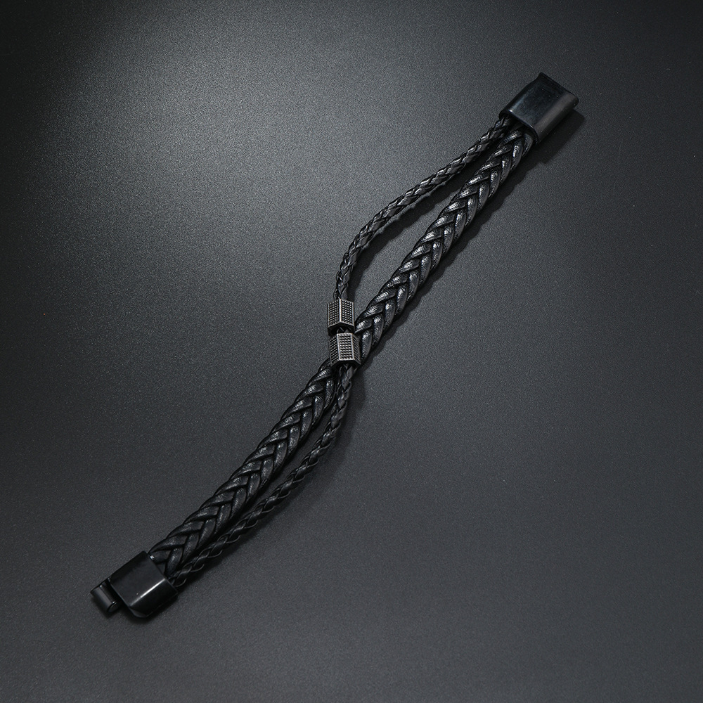 欧美跨境磁吸扣手链男高级皮质编织手链男生小众设计嘻哈潮情侣手