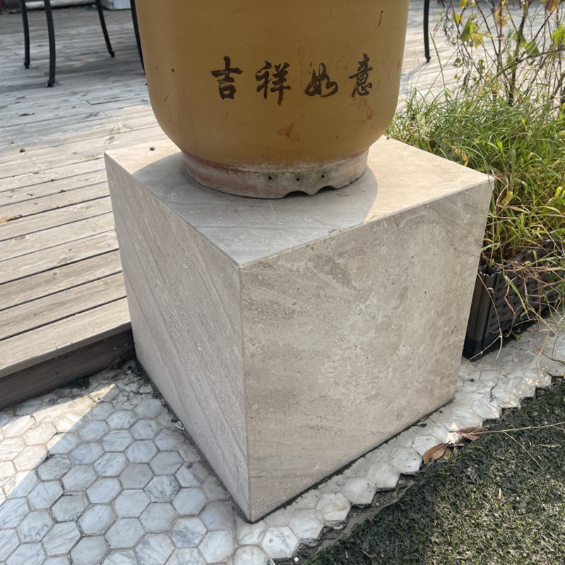 厂家直售公园石材柱座花园蹲天然大理石景观河道公园广场花盆底座
