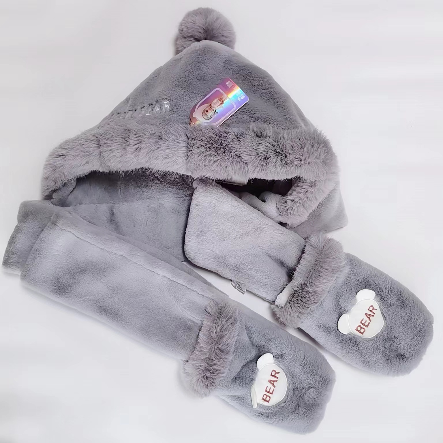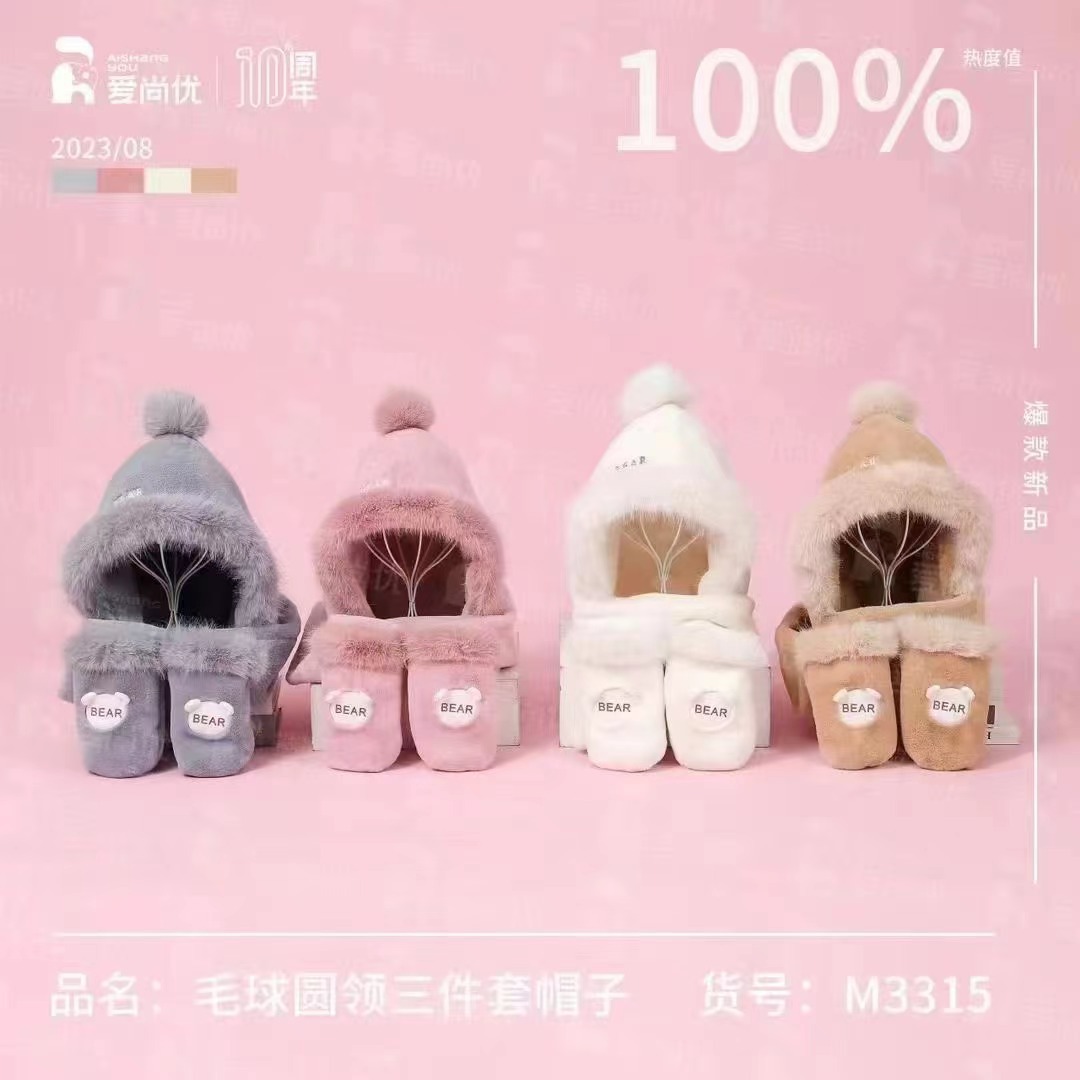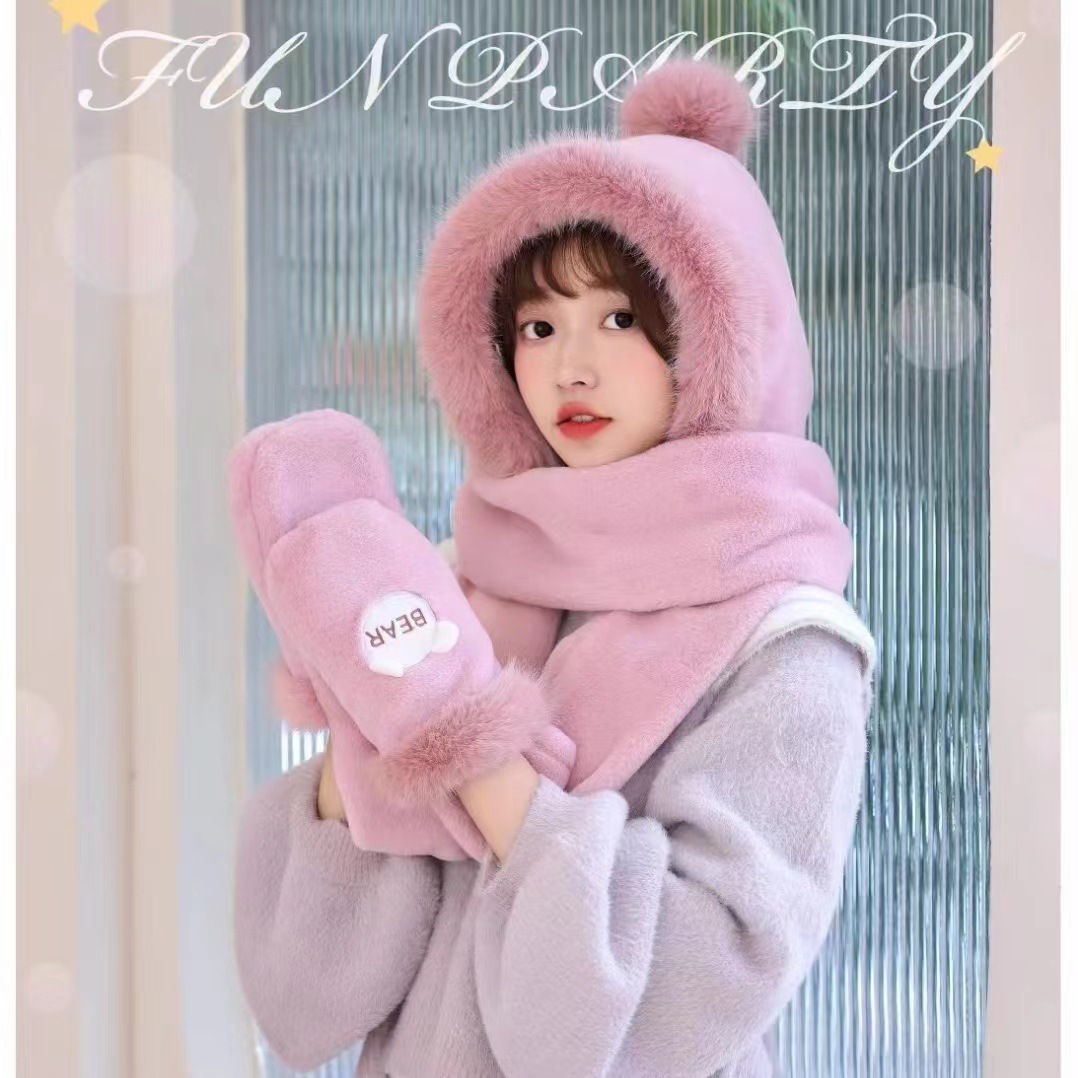 爱尚优帽子围巾手套一体帽围脖秋冬季骑车保暖加绒护耳加厚防风帽