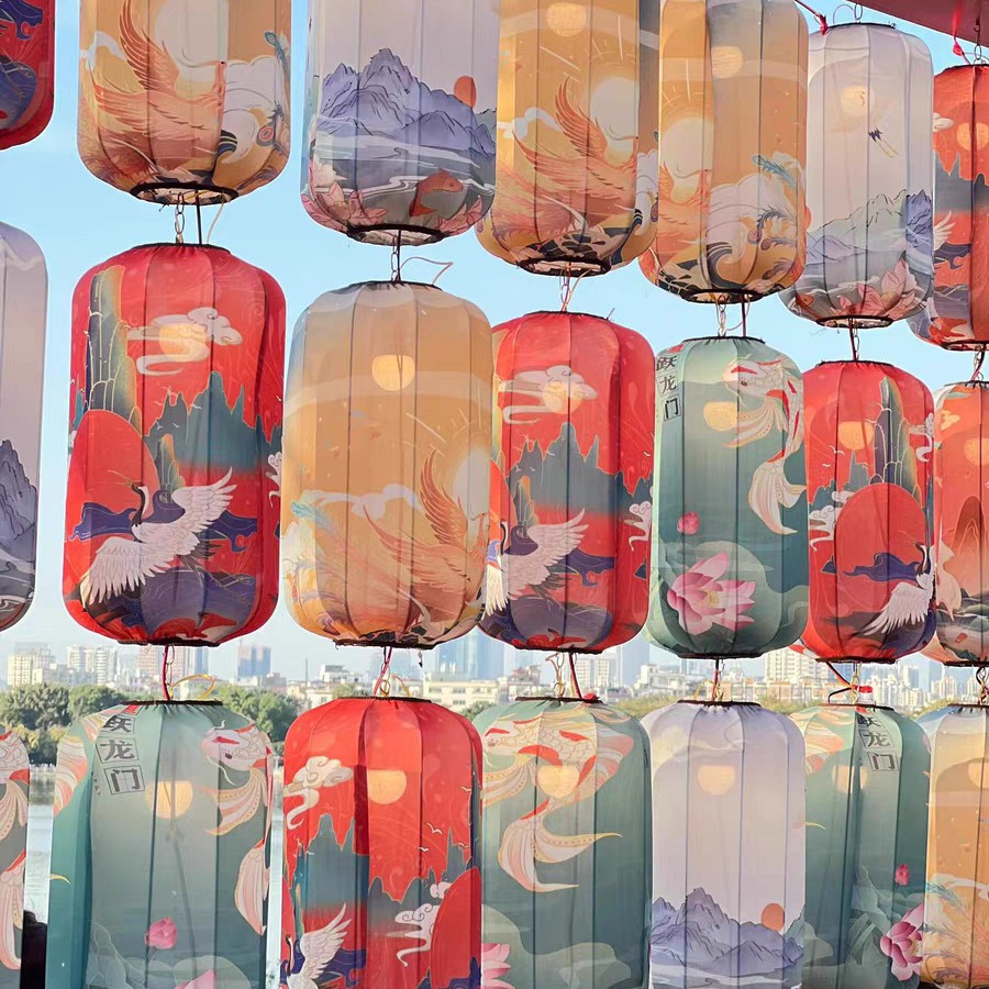 仿古国潮弹力布灯笼古镇夜景饭店装饰可连串吊灯户外防水冬瓜灯笼