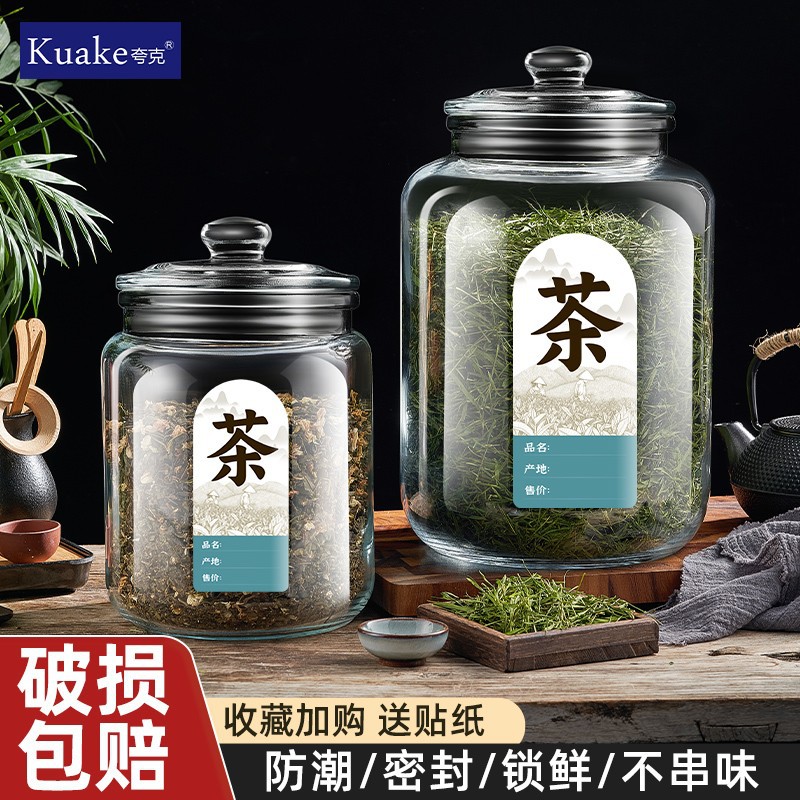 茶叶罐高档玻璃密封罐陈皮专用大号储存罐普洱白茶商用瓶储物罐桶