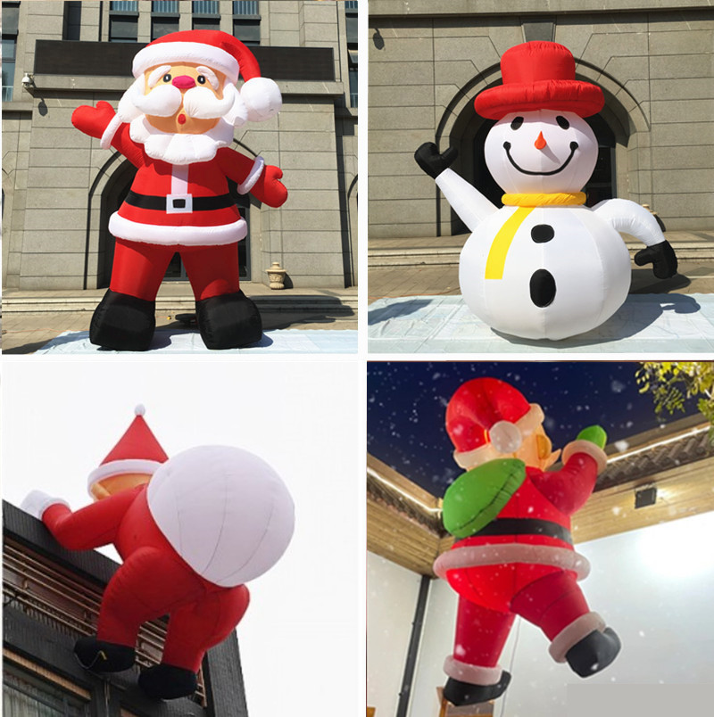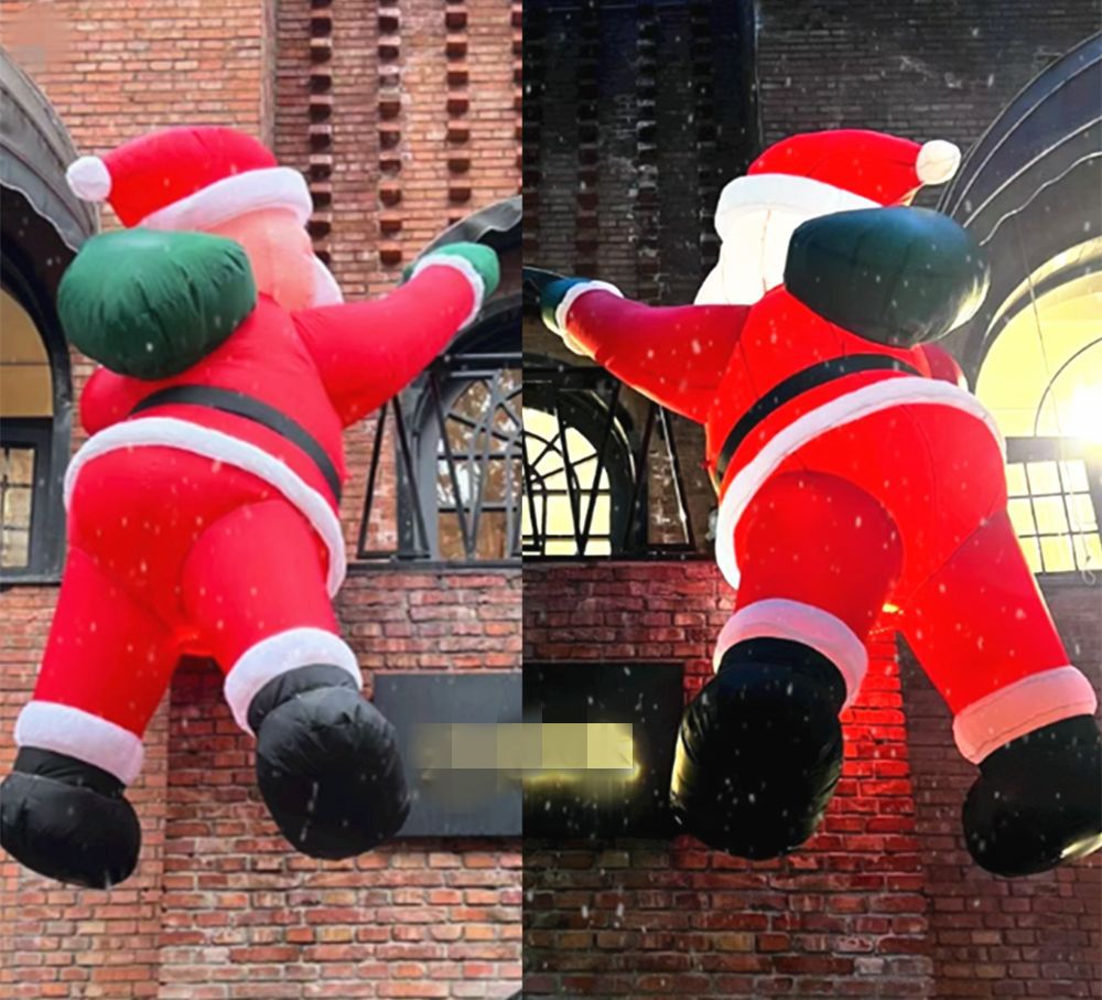 充气圣诞老人爬墙气模户外悬挂发光装饰雪树拱门商场大型卡通模型