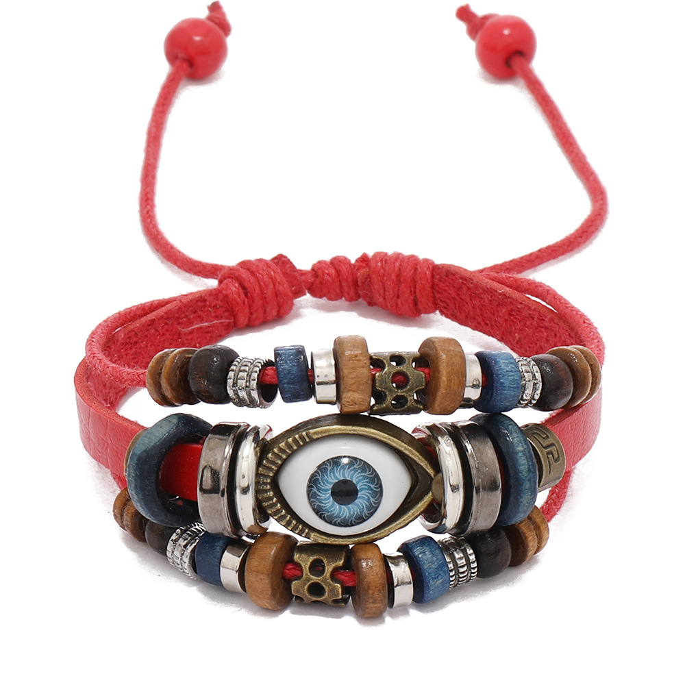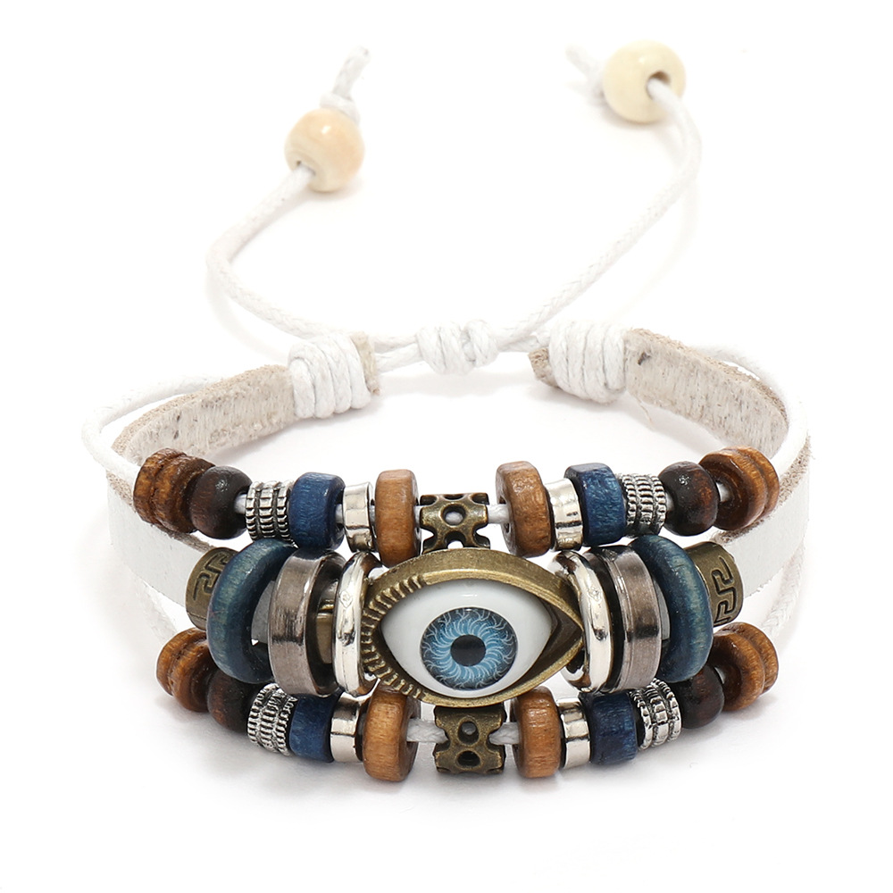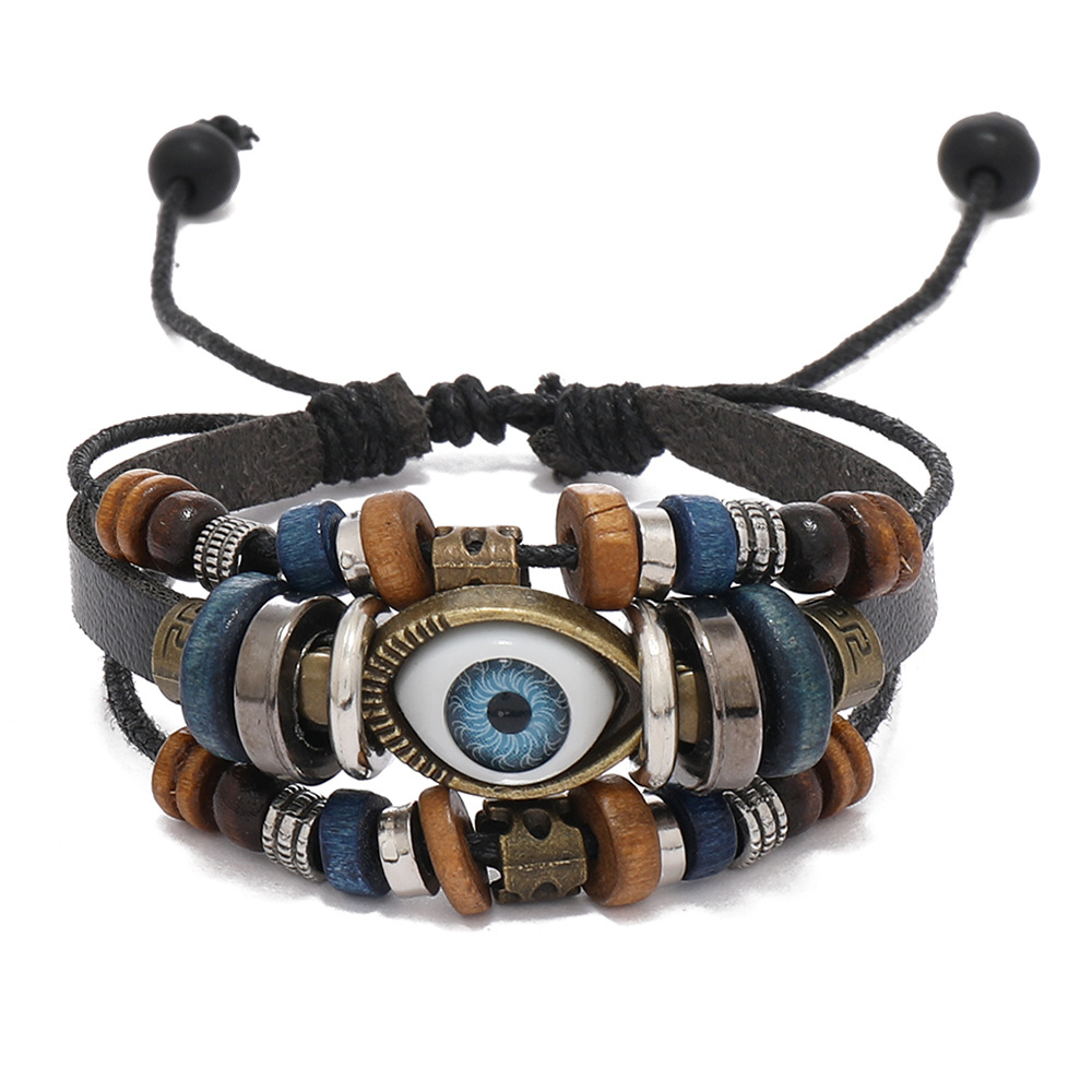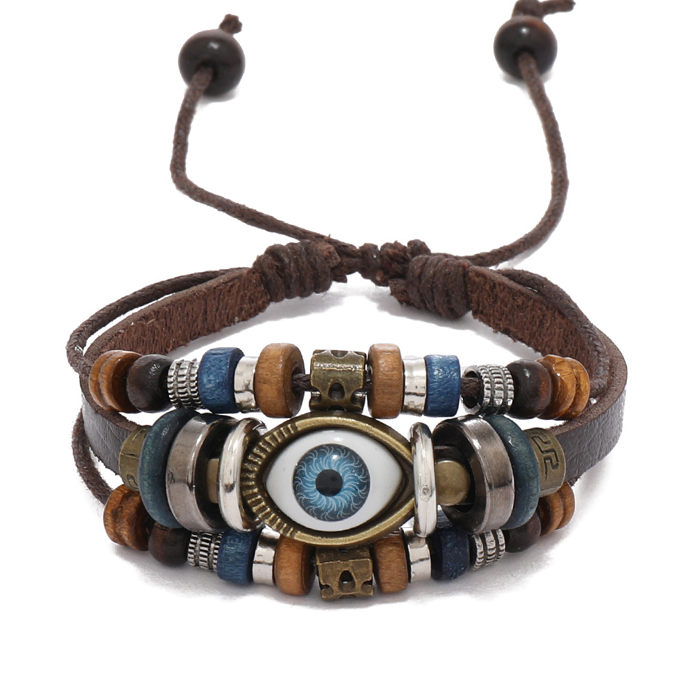 跨境爆款饰品串珠多层蓝色眼睛牛皮手链民族风挂件学生手链
