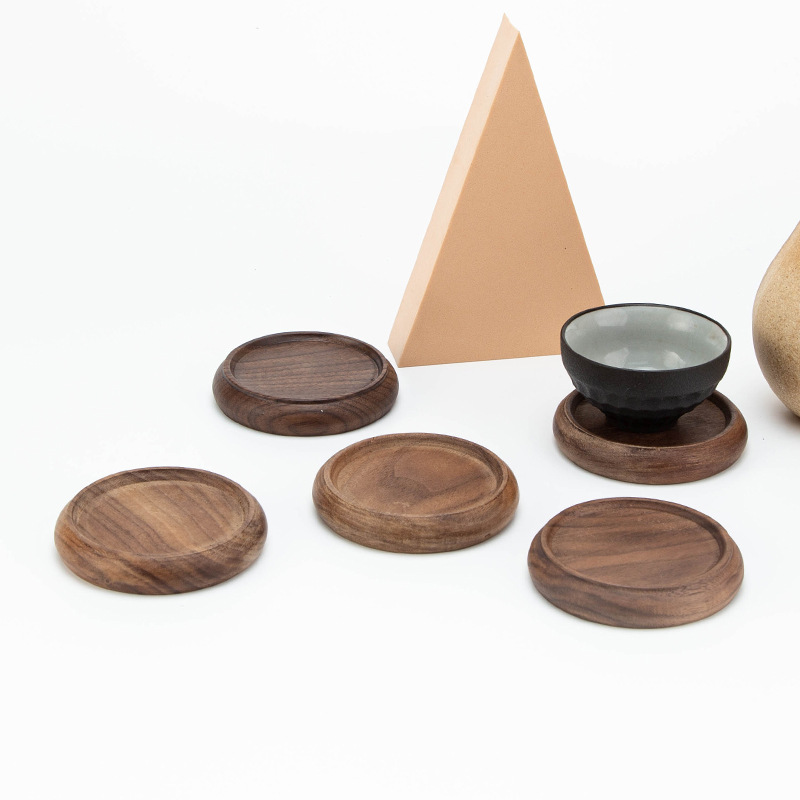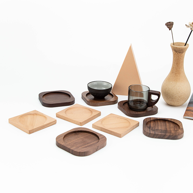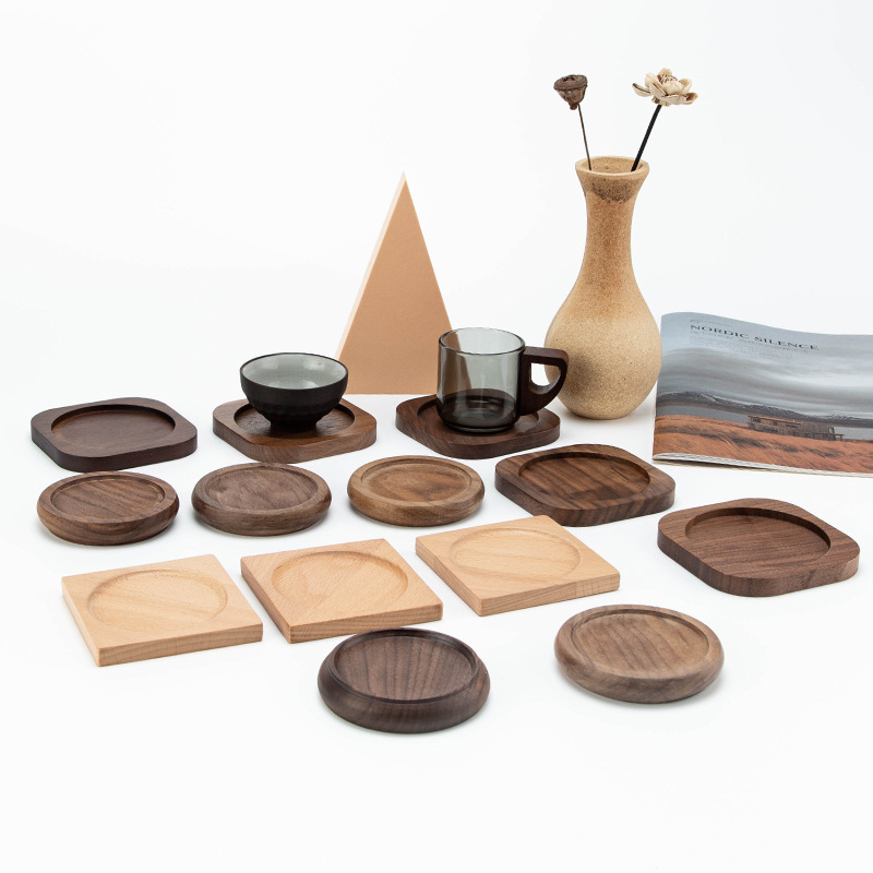 创意实木茶杯垫功夫茶杯托方形圆形木制咖啡杯垫餐垫胡桃木垫手工