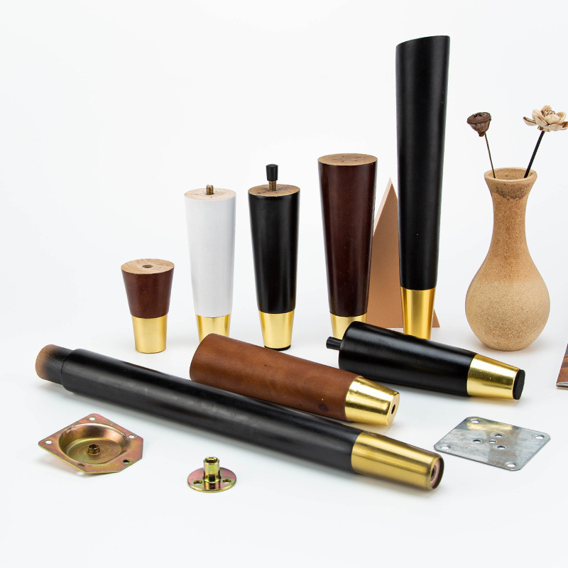 厂家直供铜套木脚沙发脚原木实心家具柜脚茶几桌子木脚电视柜木腿
