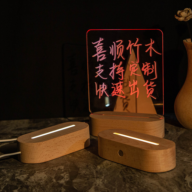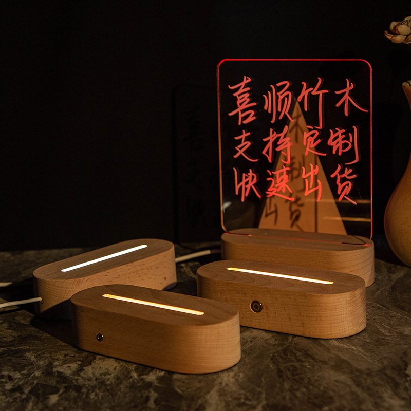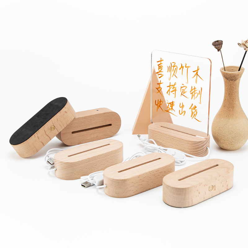 榉木椭圆形小夜灯榉木木质发光小夜灯底座创意工艺品桌面实木摆件