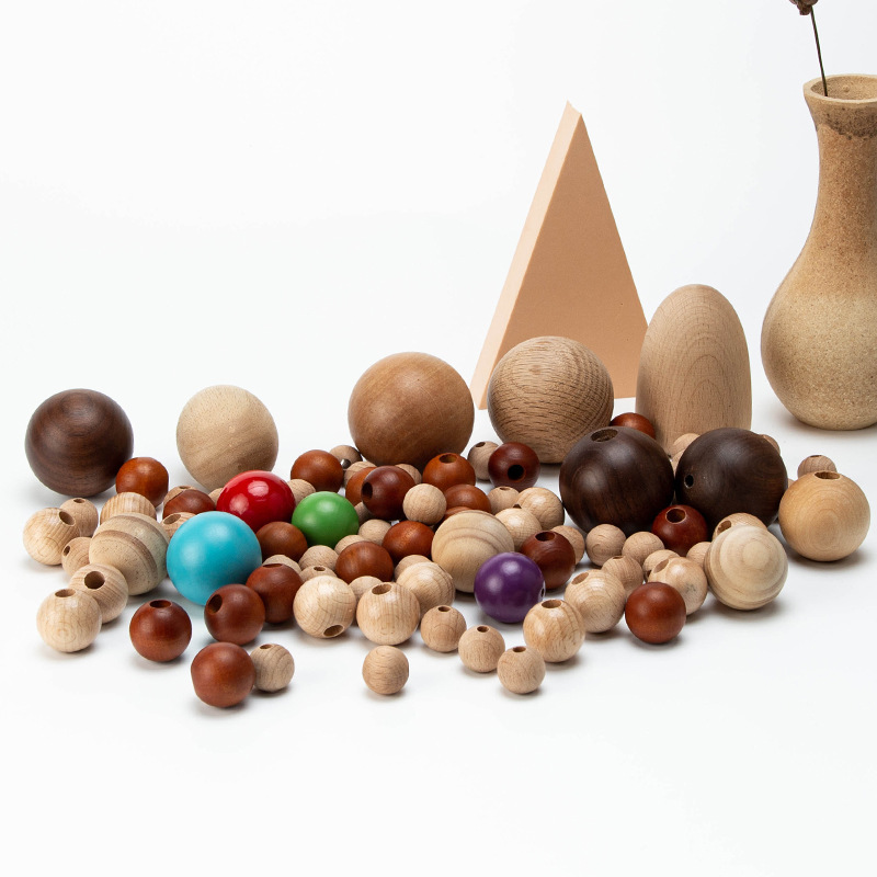 厂家供应榉木实心木质实木圆球工艺品七彩圆球木球挂件玩具小配件