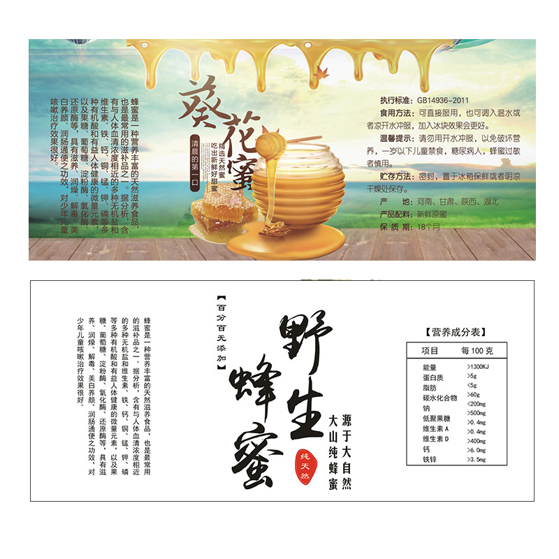 厂家印刷蜂蜜不干胶标签广告不干胶封口贴设计二维码透明贴纸批发
