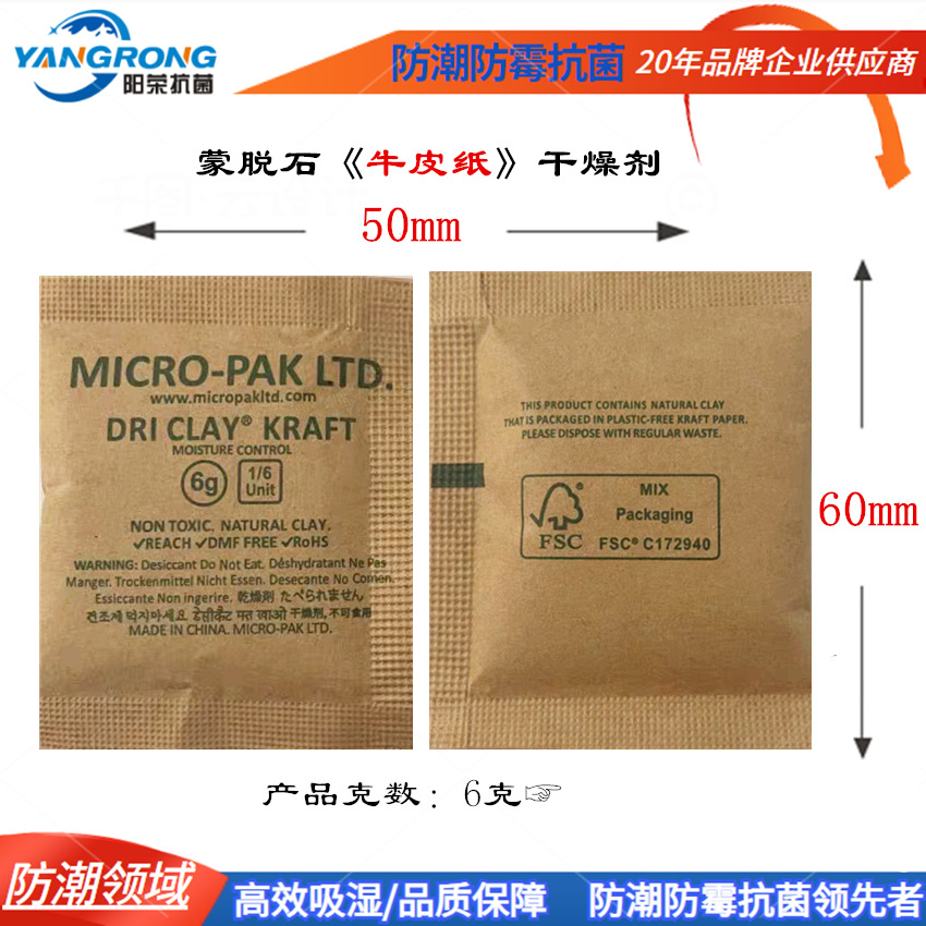 | 规格型号 | 2g克牛皮纸干燥剂蒙脱石10000包/箱(整箱购买) | 规格型号 | 6g克牛皮纸干燥剂蒙脱石4000包/箱(整箱购买) |