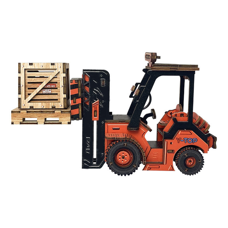 手工拼装玩具车儿童益智立体拼图创意木质仿真叉车模型桌面摆件