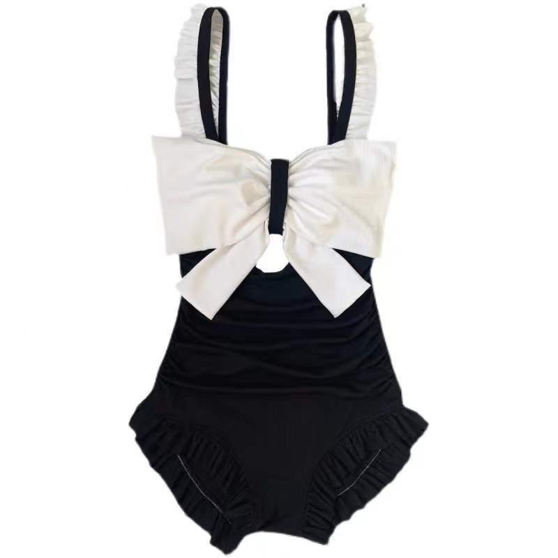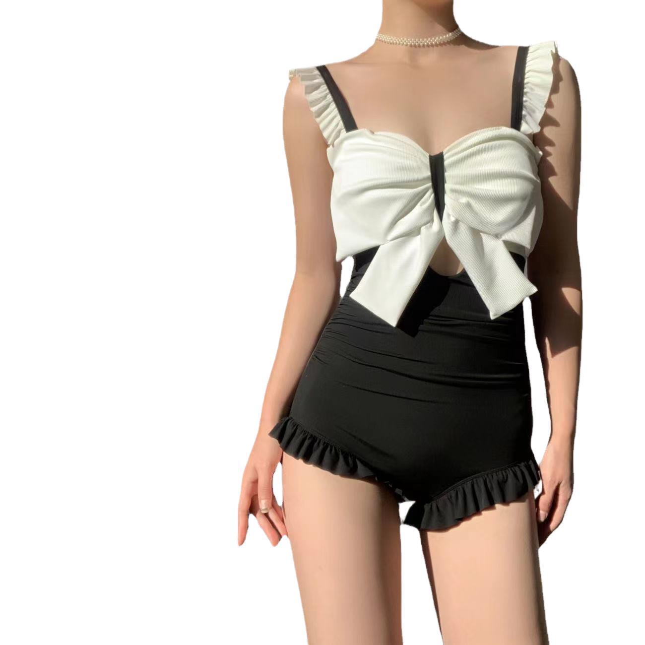 性感新款泳衣女款连体网红一体式荷叶边专业游泳装蝴蝶结露背温泉