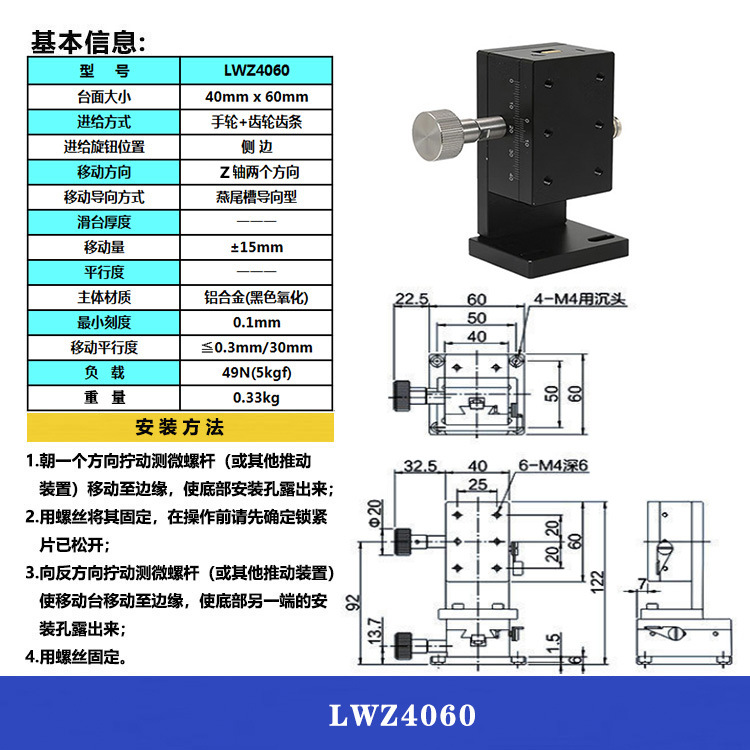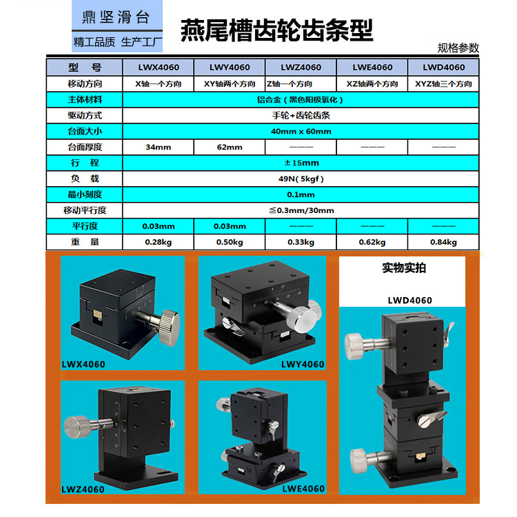 z轴燕尾槽平台lwz4060手动精密微调齿轮齿条型垂直升降燕尾槽滑台