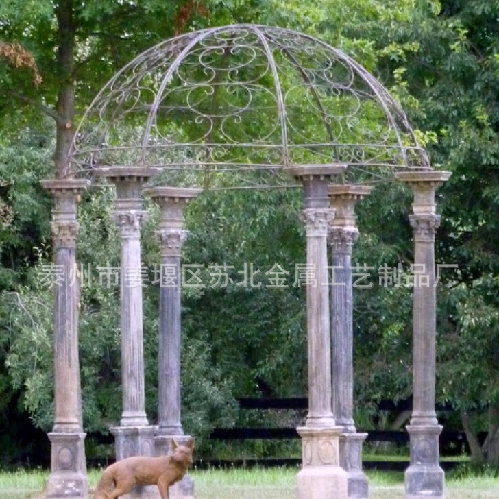 欧式花园古典铁艺凉亭 景观休闲六角凉亭 园林铁工艺锻打穹顶廊架