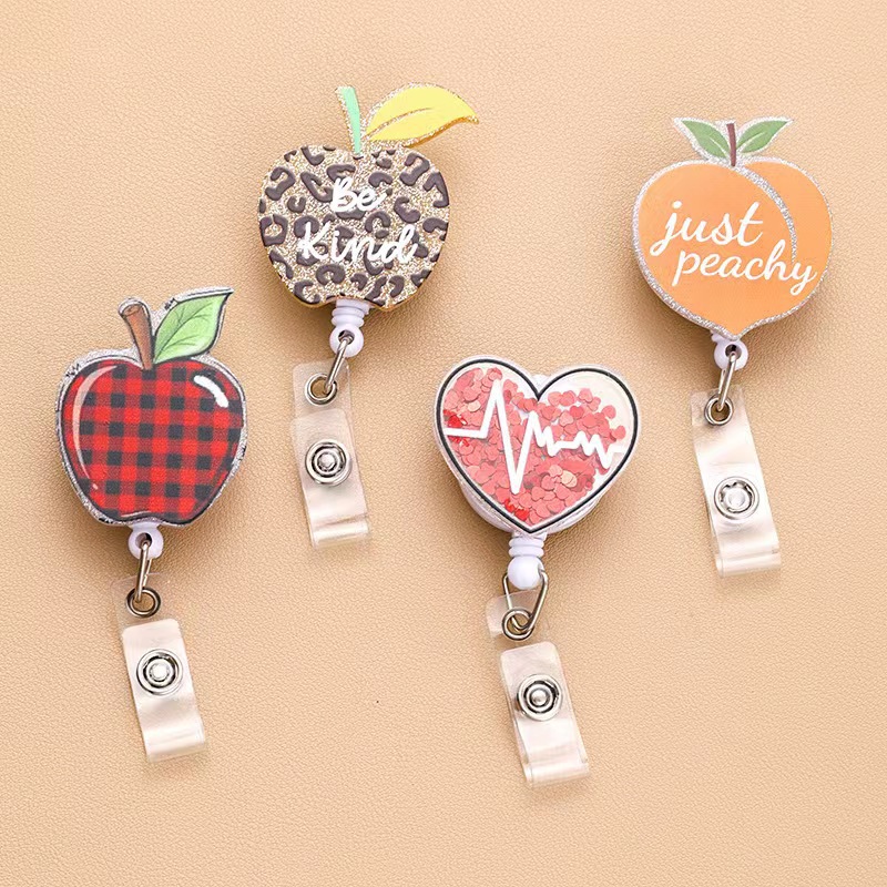 跨境护士胸牌亚克力伸缩易拉扣定制闪粉胸卡卡通易拉扣定做文创礼
