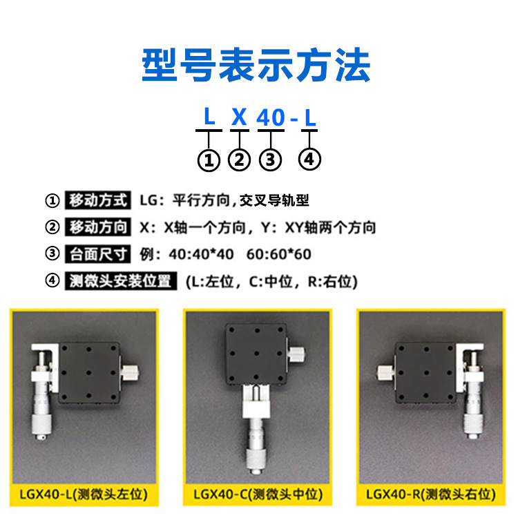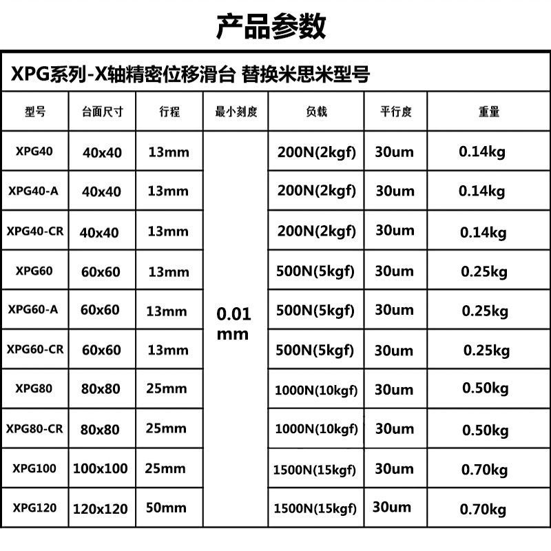 x轴交叉滚子导轨型移动滑台xpg40/xcrs40 精密丝杆螺杆型微调平台
