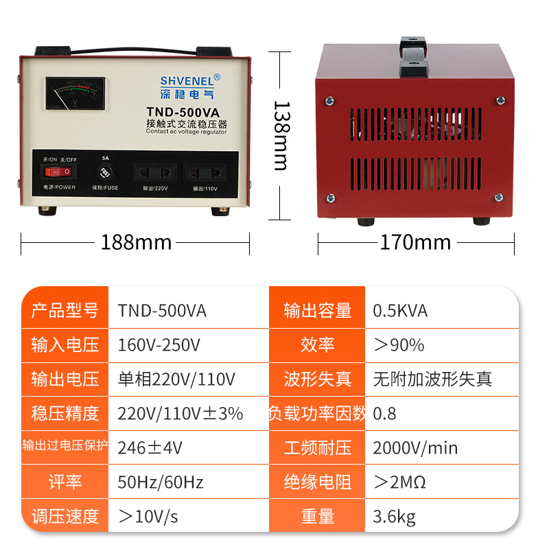 直销单相220V接触式高精度全自动交流SVC/TND-500VA/0.5KVA稳压器