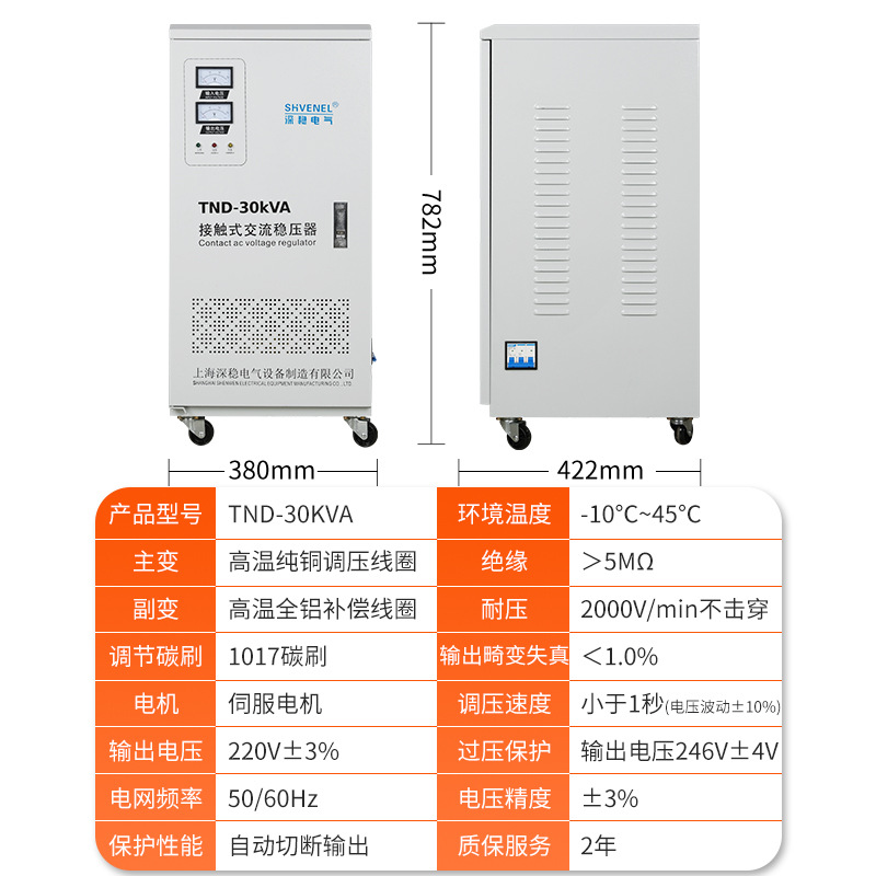 单相220V全自动SVC/TND-30KVA接触式交流稳压器30KW设备稳压电源