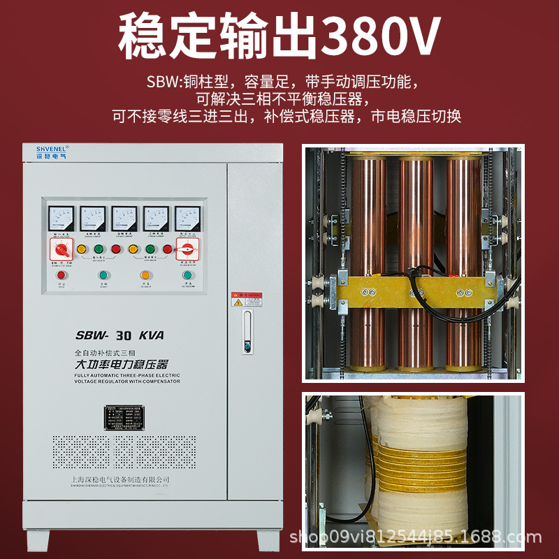 大功率SBW30KVA三相380V稳压器补偿式30KW工业设备工厂升压稳压器