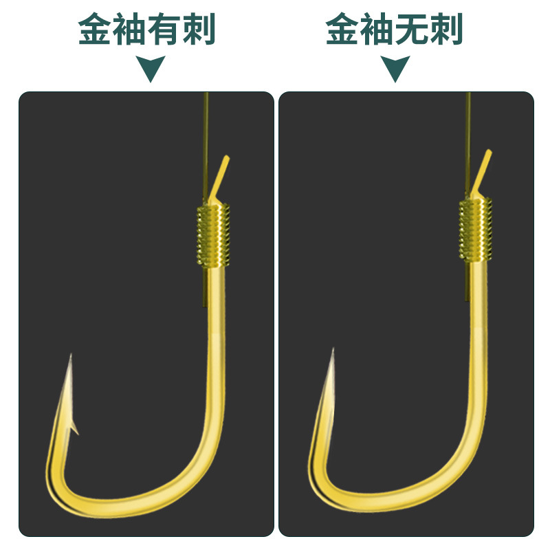 | 规格 | 金袖有刺40付(钩4-5#+线0.8-1.0#) | 规格 | 金袖有刺40付(钩5-6#+线1.0-1.2#) |