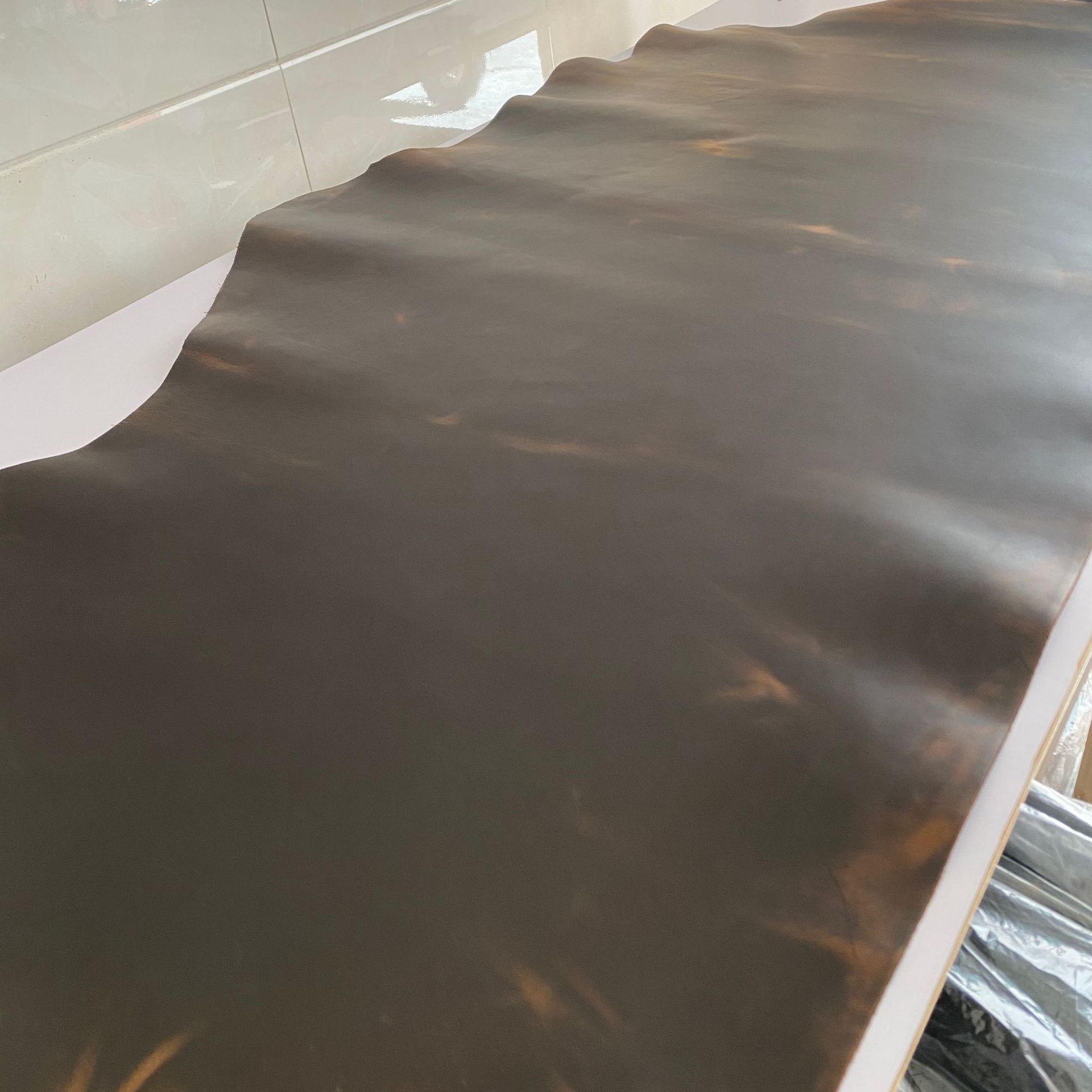 厂家直供头层牛皮疯马油蜡皮 复古风格 变色效果 箱包皮鞋皮料