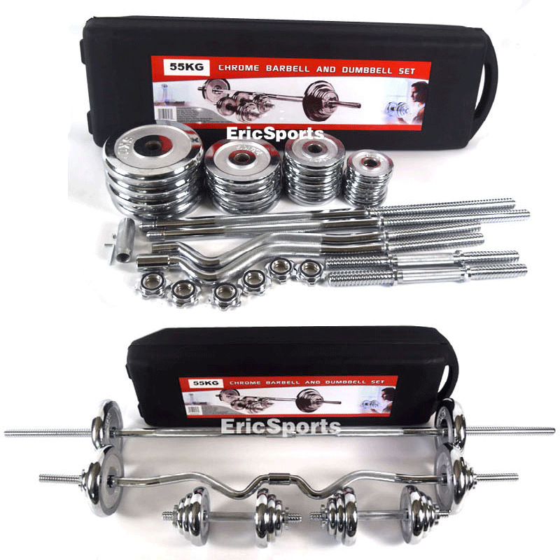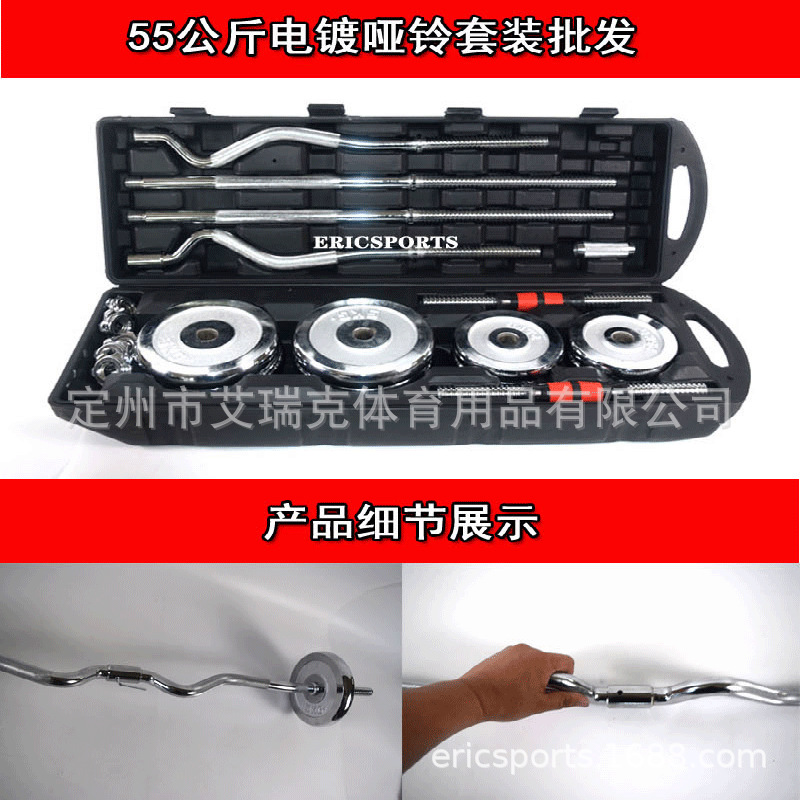 55KG男士女士健身器材家用可调节铸铁电镀哑铃杠铃礼盒装