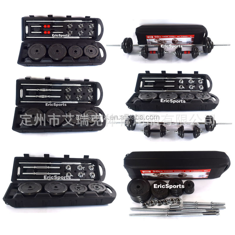 55KG男士女士健身器材家用可调节铸铁电镀哑铃杠铃礼盒装