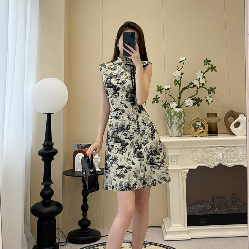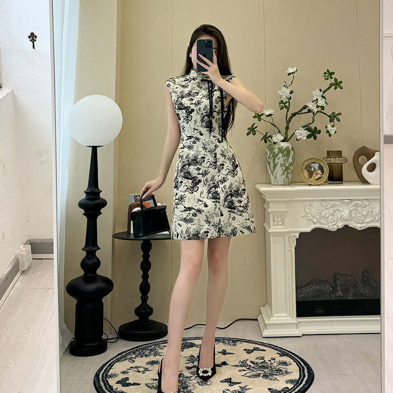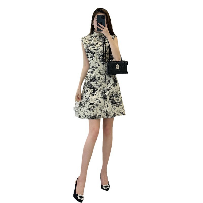 2024夏季高级感复古改良旗袍年轻款气质收腰无袖新中式连衣裙子女