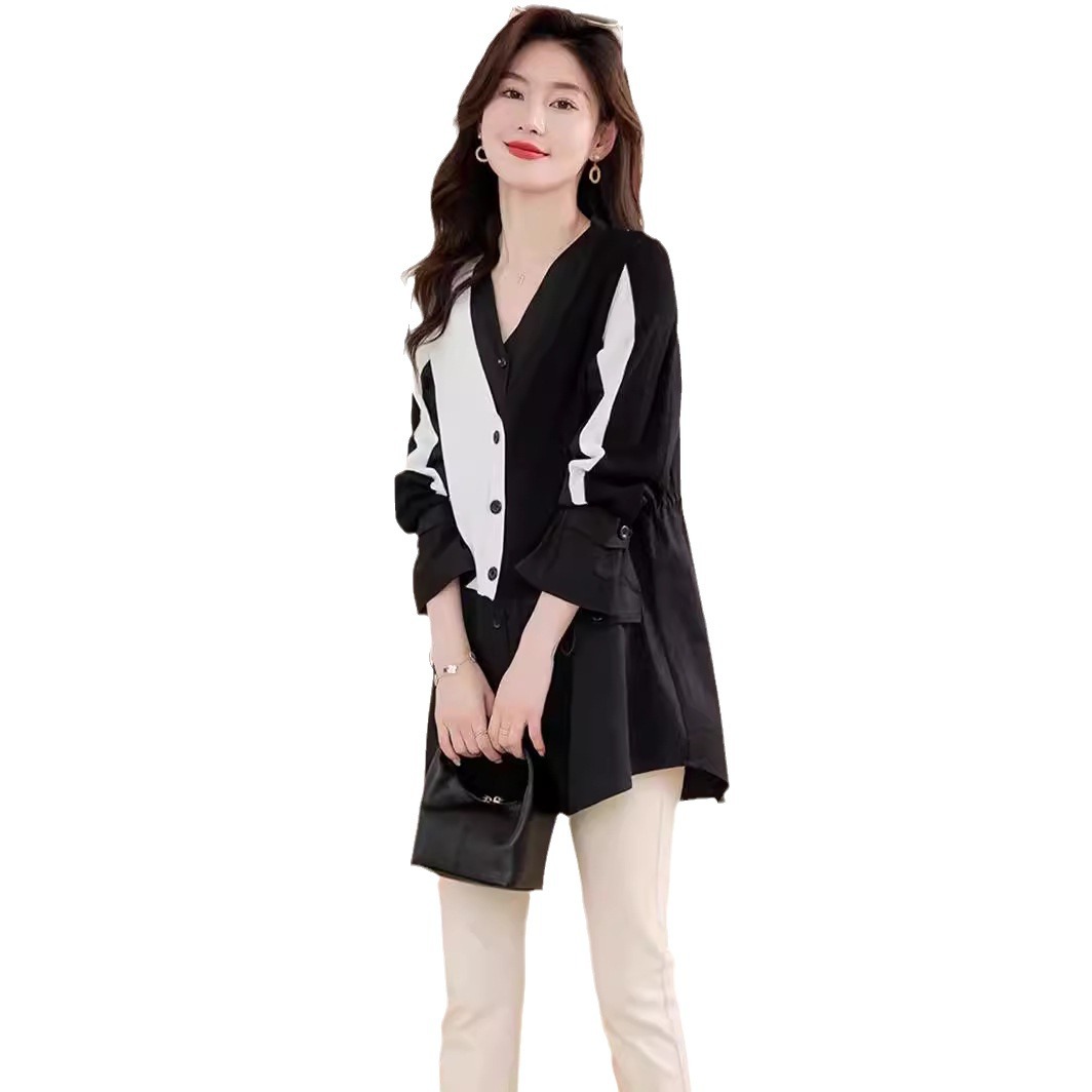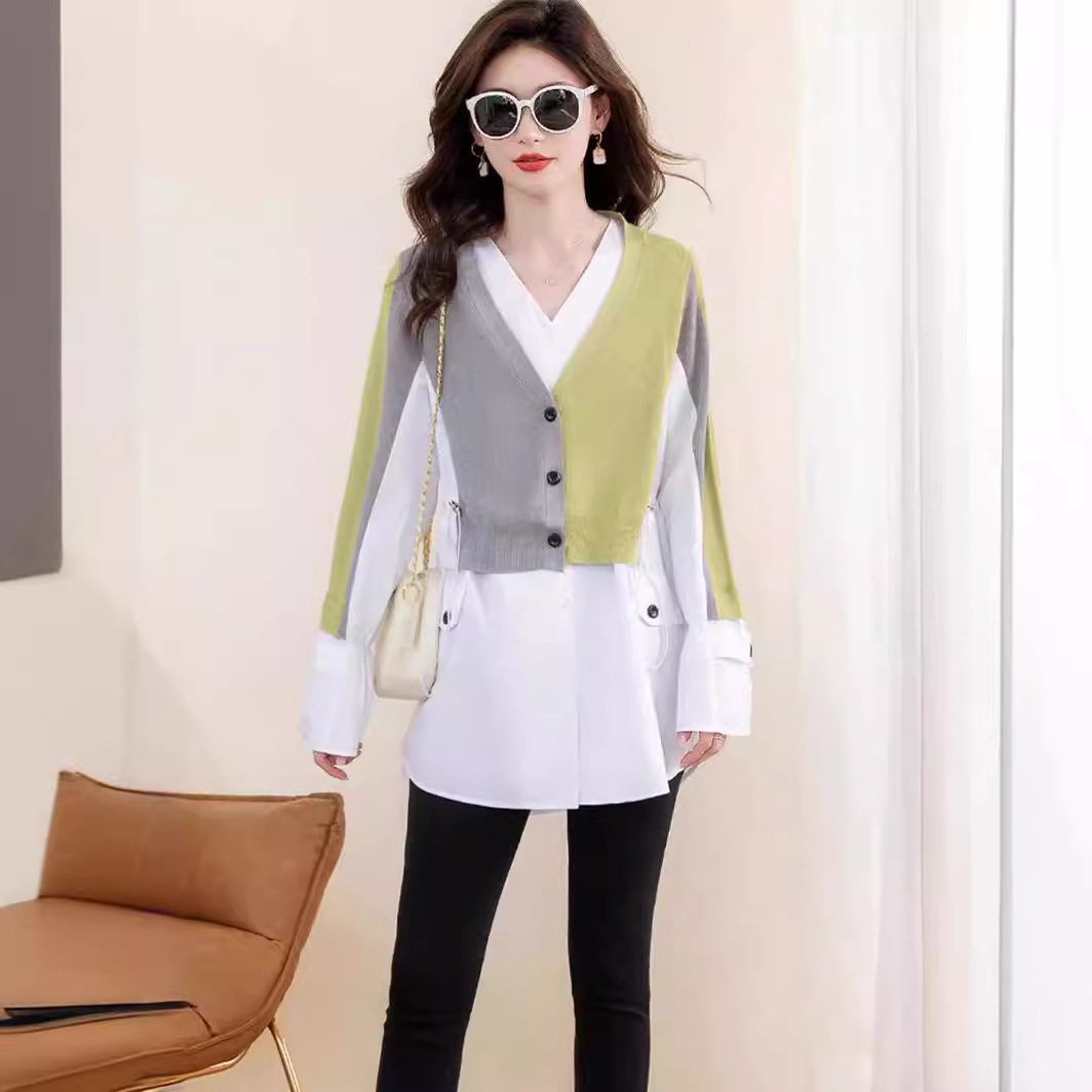 针织衫上衣女设计感2025休闲外穿显瘦春装拼接假两件短款针织开衫