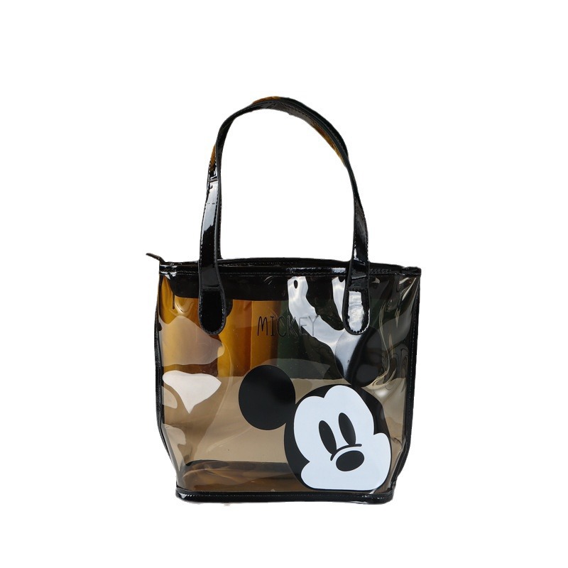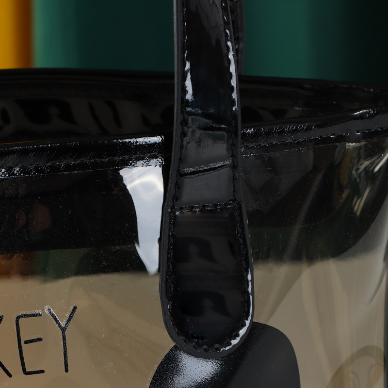 PVC黑色卡通半透明手提袋可定 制logo图案广告出差购物旅行收纳包