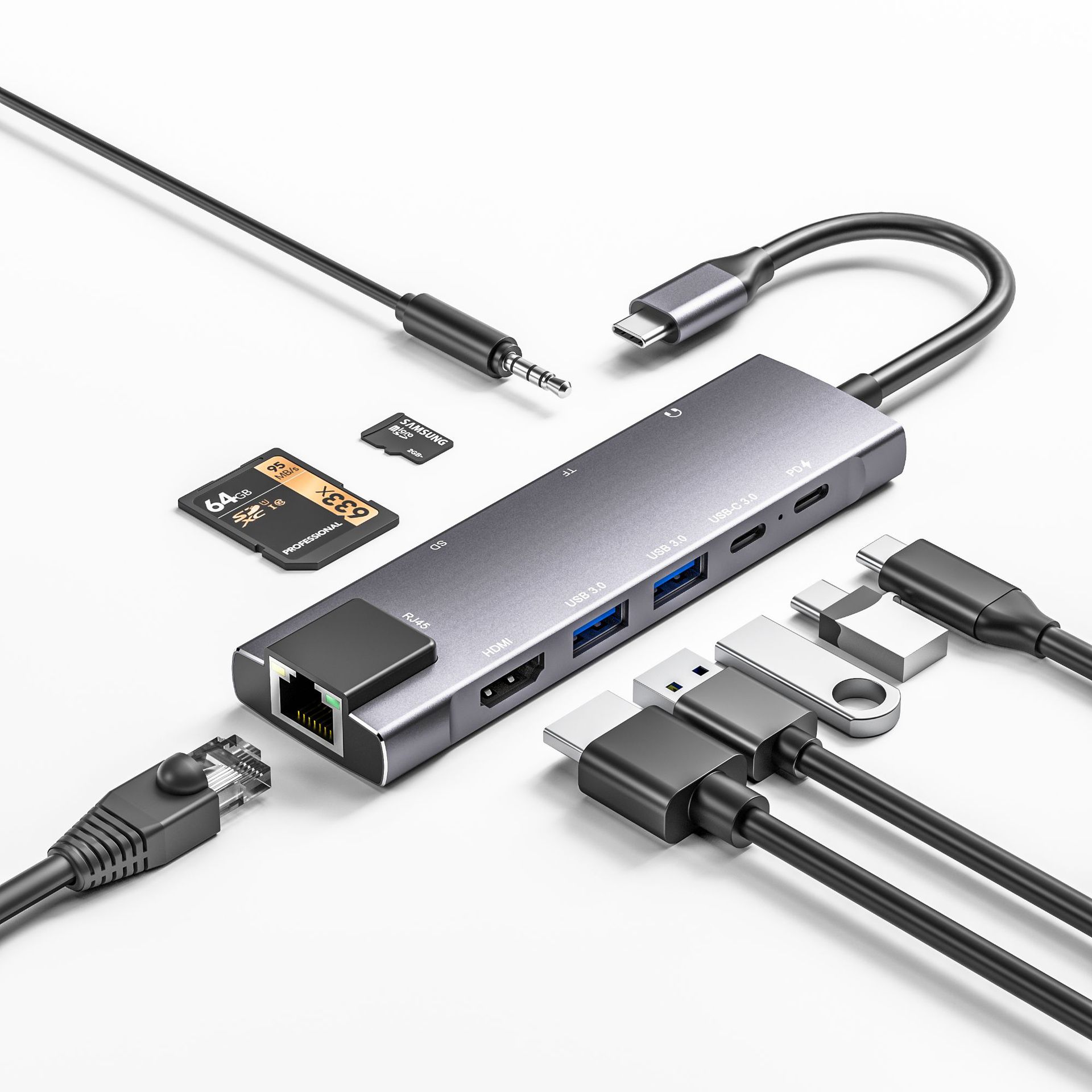 type-c扩展坞 九合一 HDMI拓展坞typec扩展USB分线器转接头千兆网